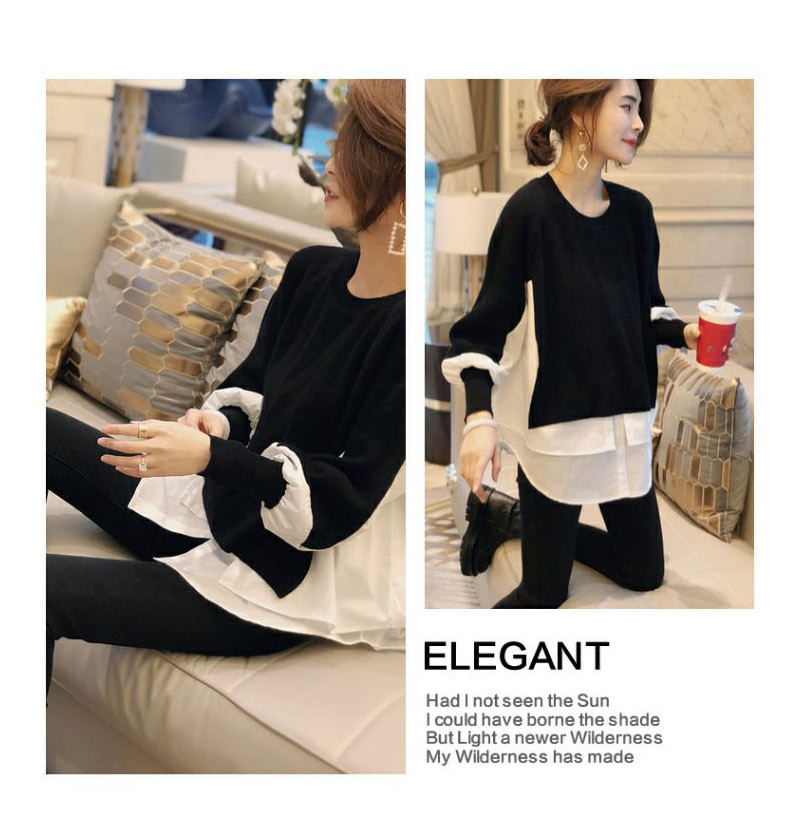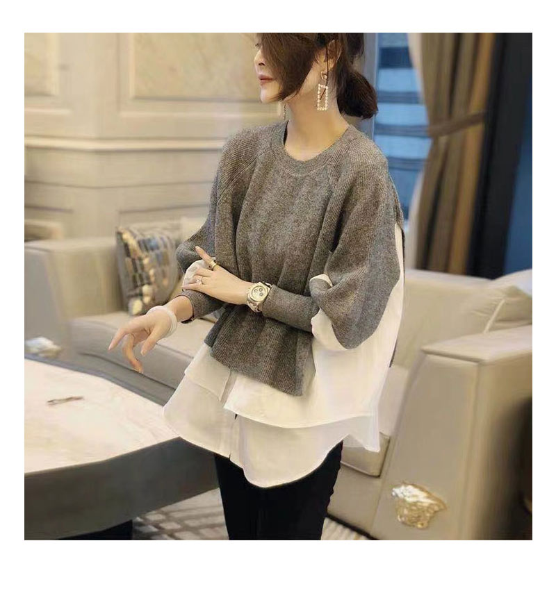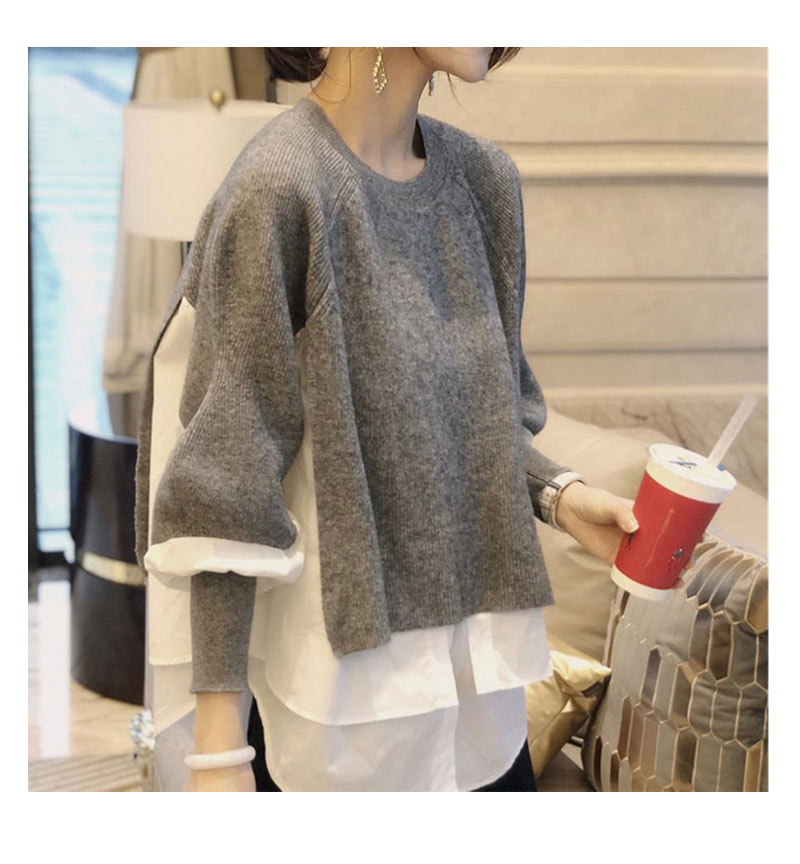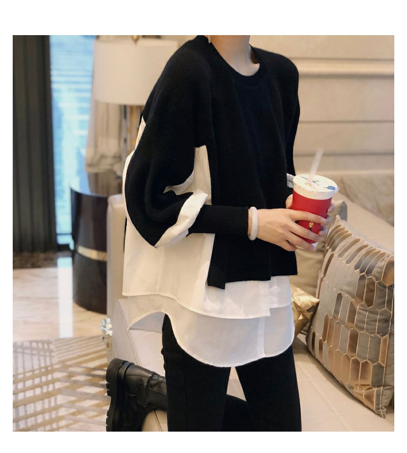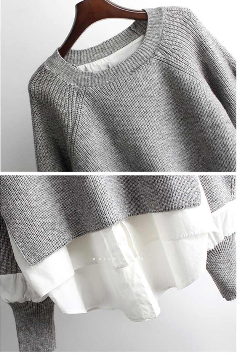 異素材ドッキング ニット トップス レ レディースファッション 早い者勝ち 黒+白シャツ グレー+白シャツ 黒+黒シャツ ベージュ+白シャツ