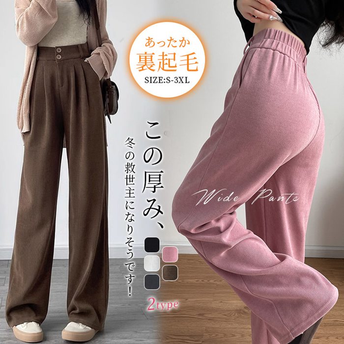 ワイドパンツ レディース 冬 裏起毛 ボトムス パンツ 超目玉商品 ダークグレー ブラック オフホワイト コーヒー色 ピンク 通常タイプ 裏起毛タイプ