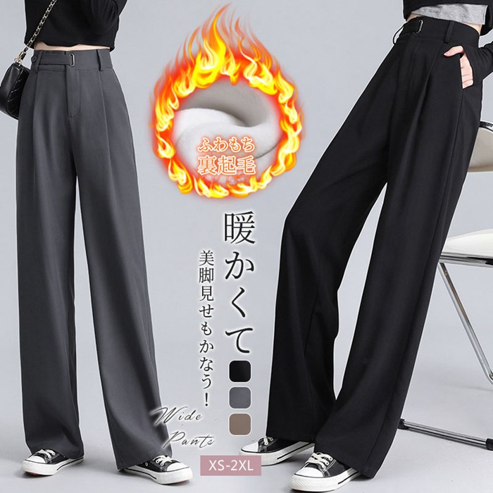 ワイド パンツ レディース 秋 冬 裏 レディースファッション 新登場! ブラック コーヒー色 ダークグレー 通常 裏起毛
