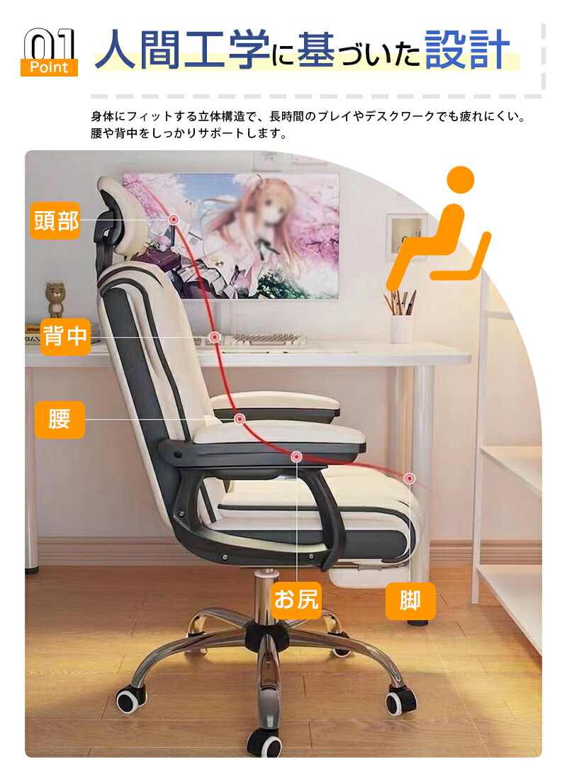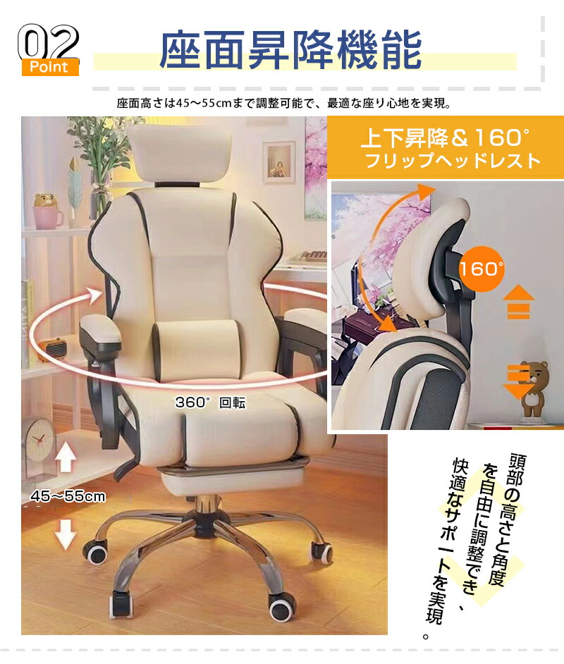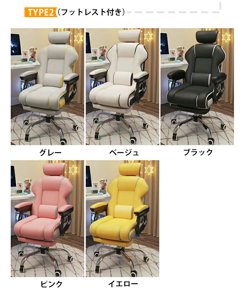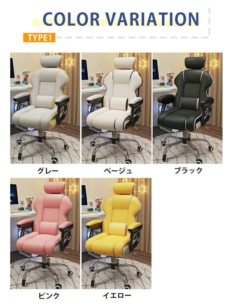 ゲーミングチェア オフィスチェア チェ TYPE1 TYPE2 グレー ベージュ ブラック ピンク イエロー