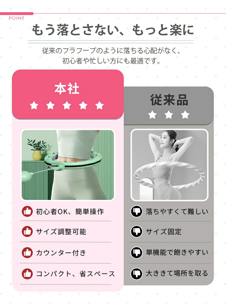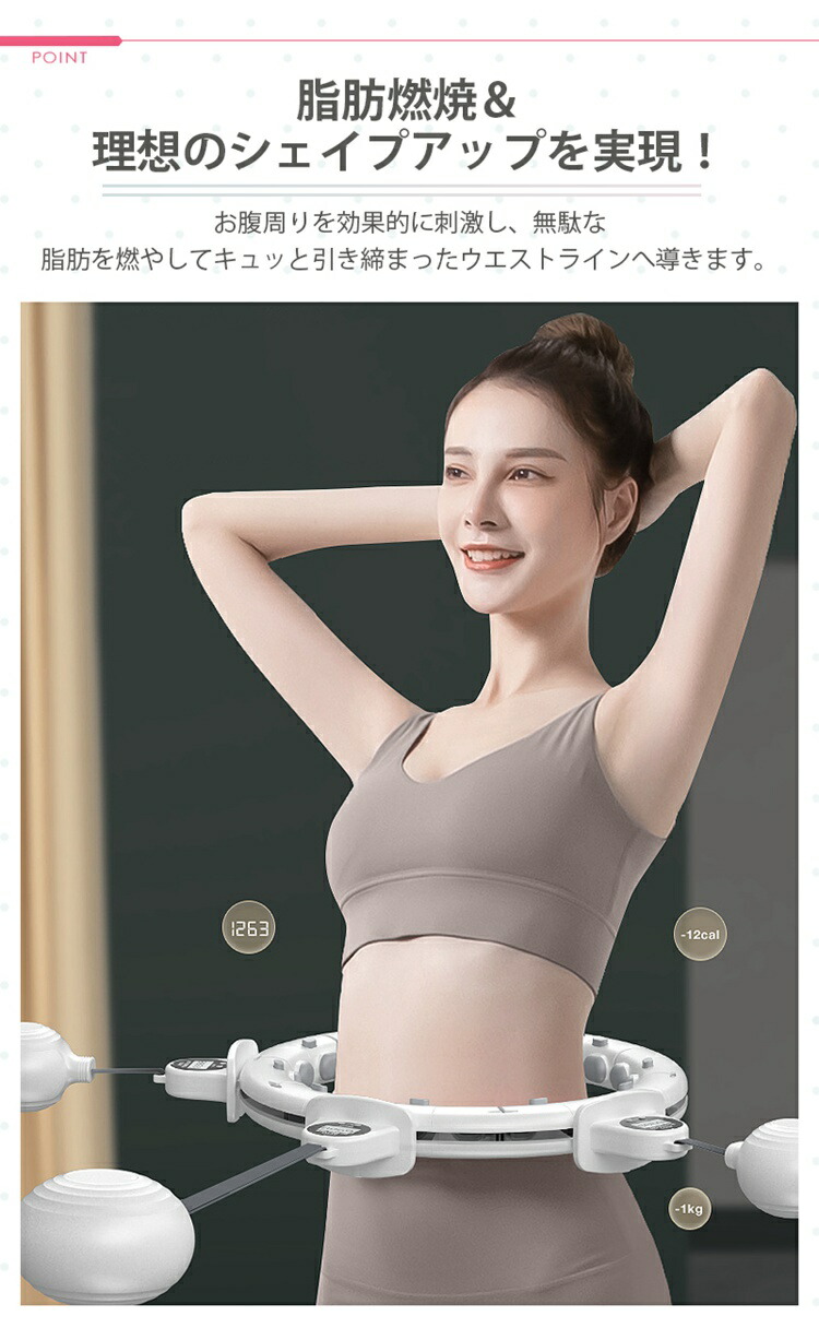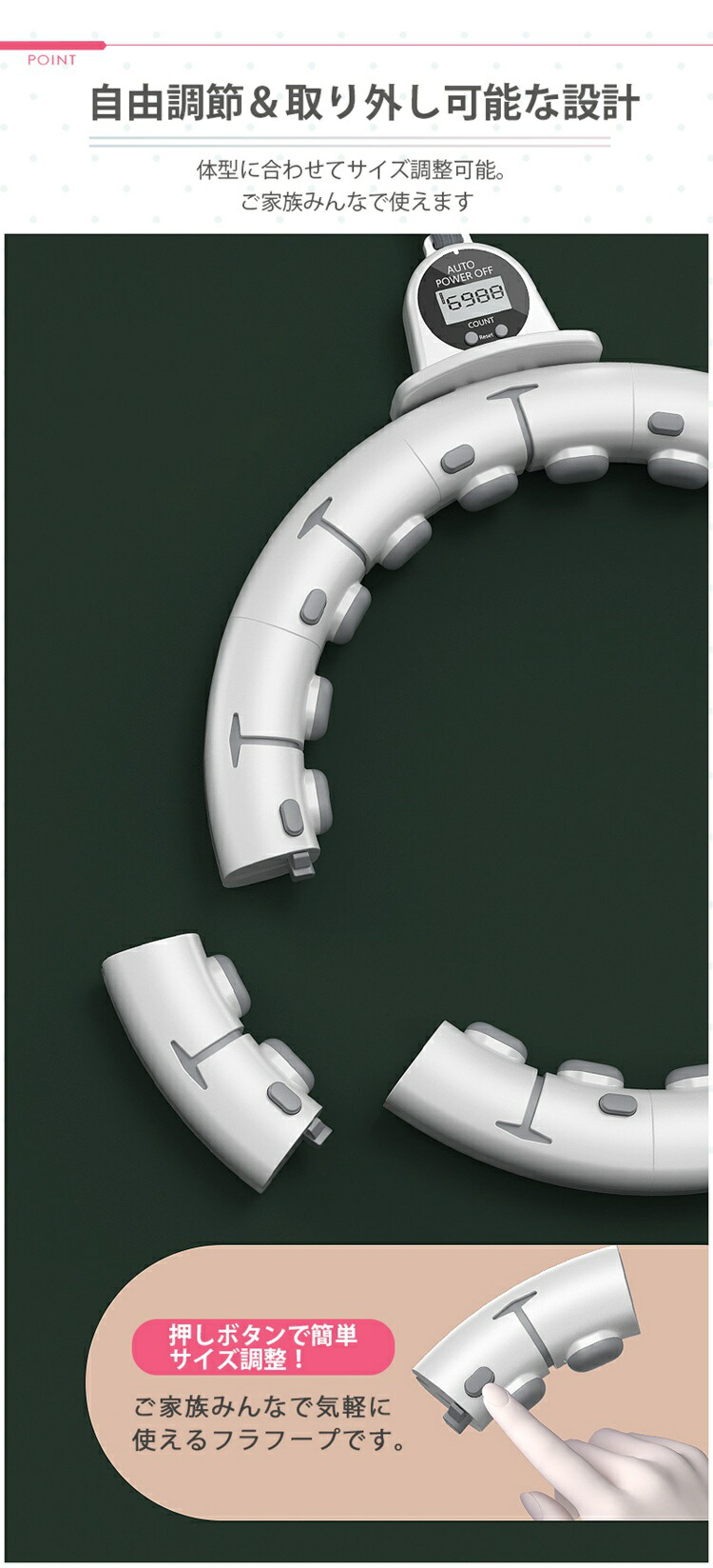 自宅で運動スマートフラフープ フラフー グリーン ホワイト パープル S(ウェスト65~80cm) M(ウェスト65~90cm) L(ウェスト65~110cm)