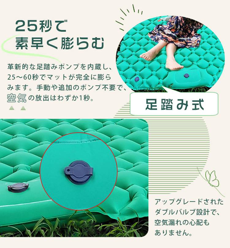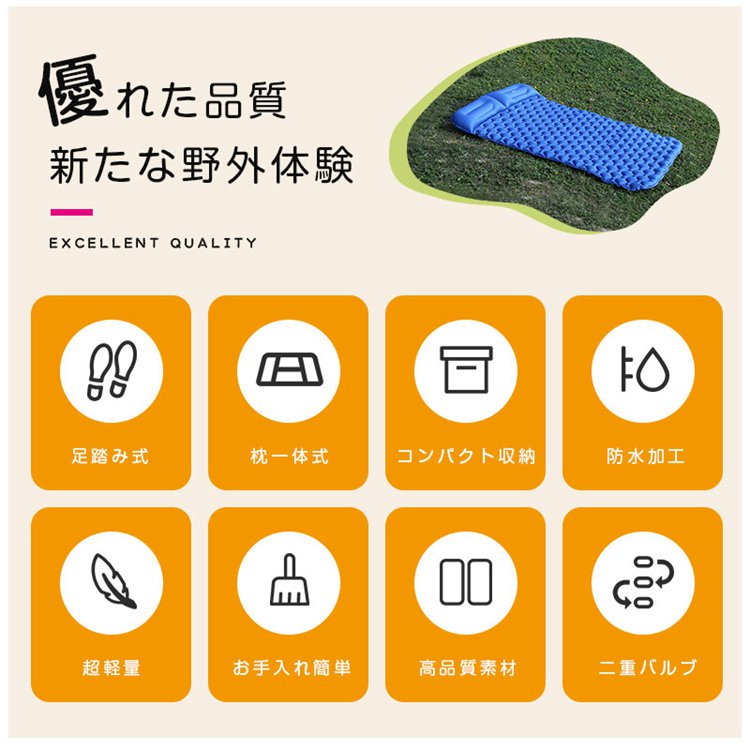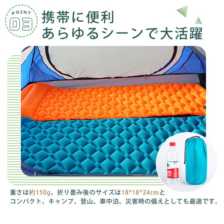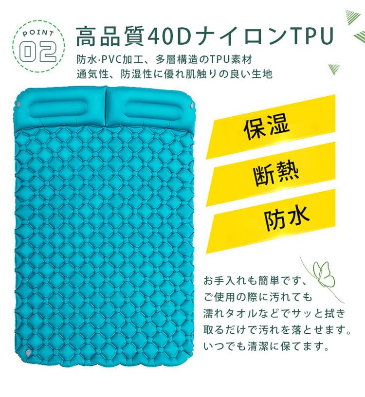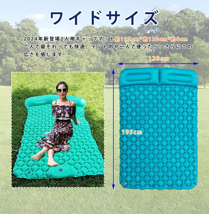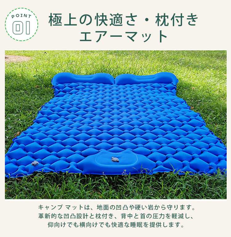エアーマット 2人用 キャンプマット アウトドア アウトドア用寝具 マット 人気 ターコイズ ロイヤルブルー グリーン オレンジ