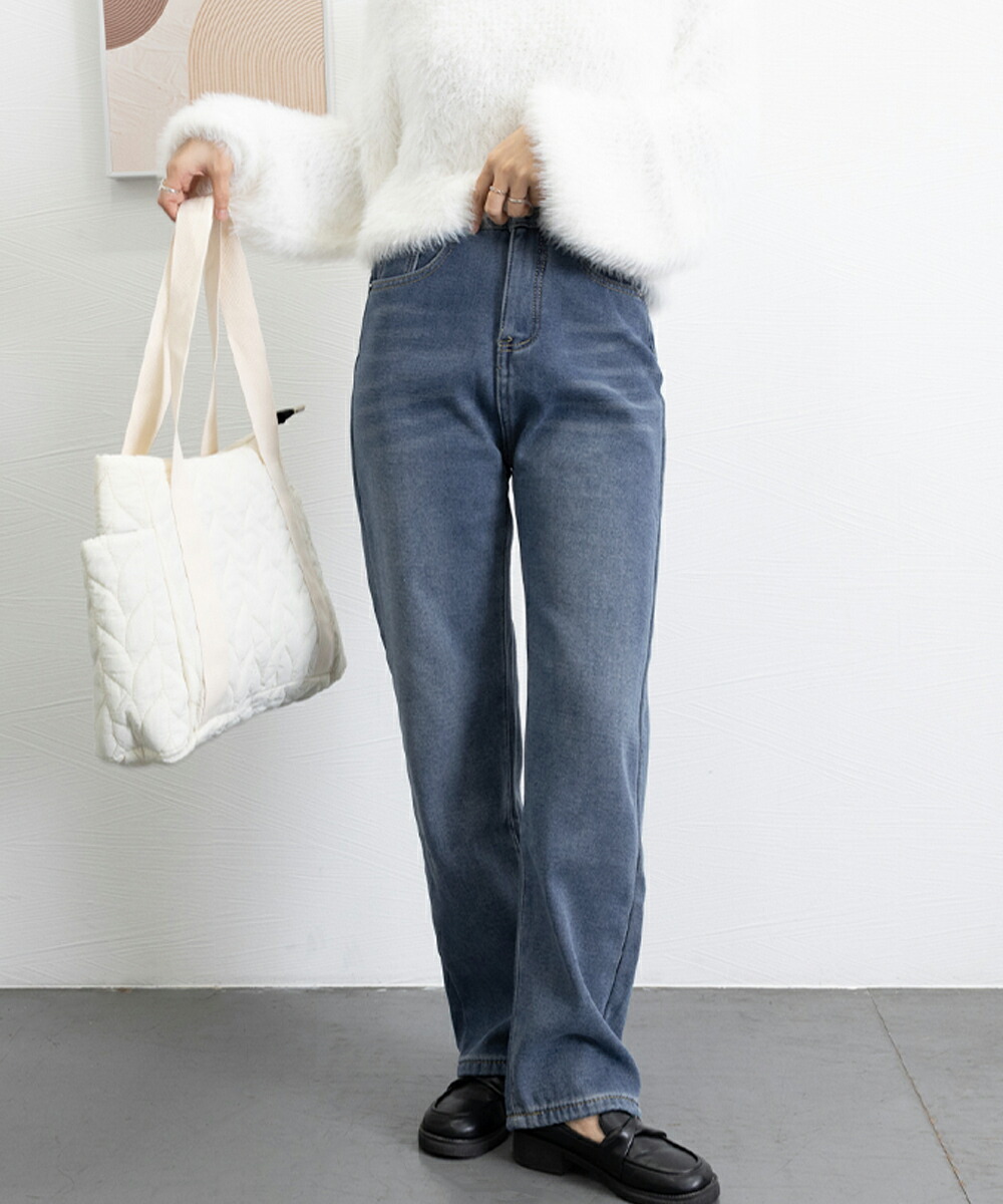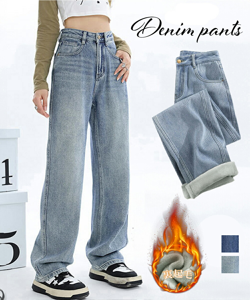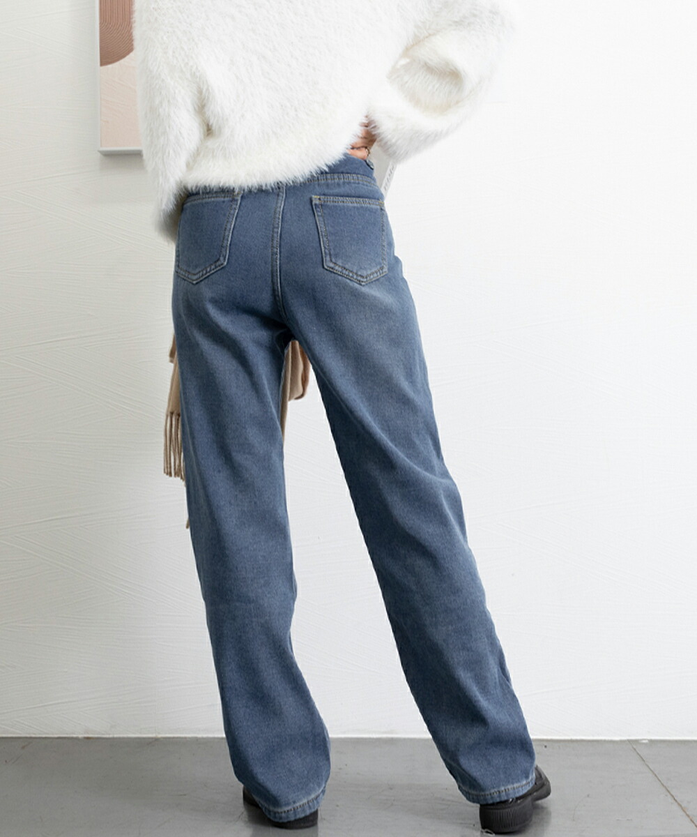 裏起毛デニムパンツストレートデニム裏ボ ボトムス パンツ 超目玉商品 インディゴブルー サックスブルー L M S XL