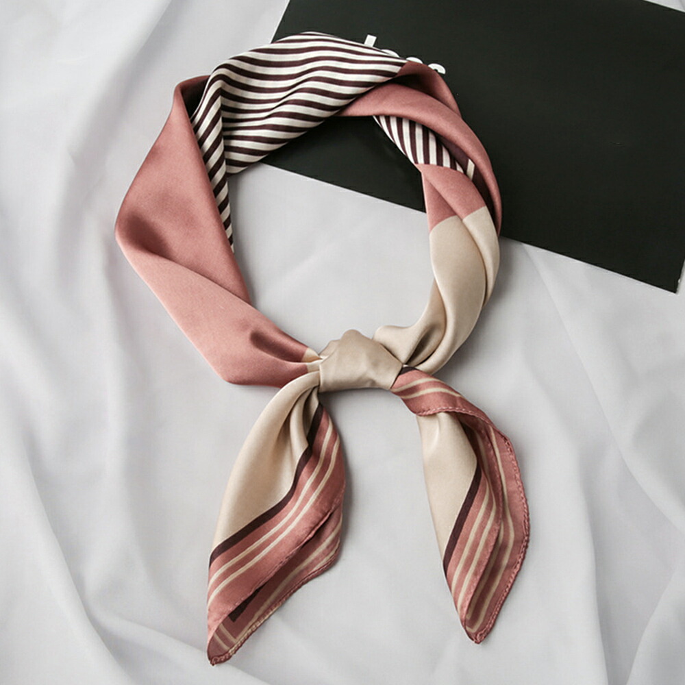 シルク風スカーフ 首巻き 配色バンダナ バッグ 小物 ブランド雑貨 新登場! テラコッタ ピンク ブルー ベージュ