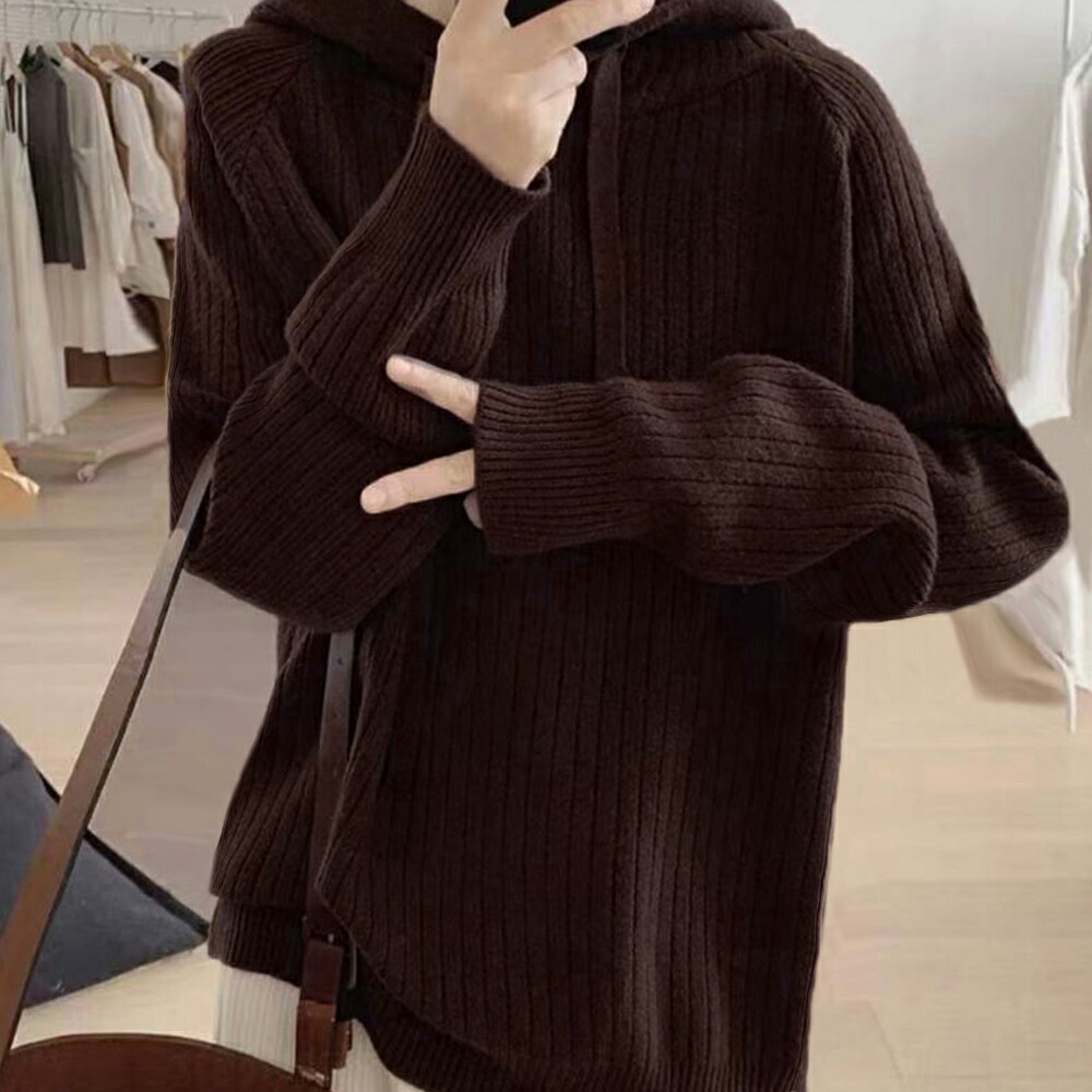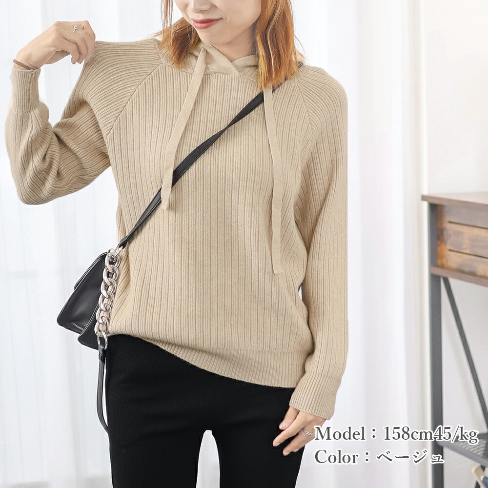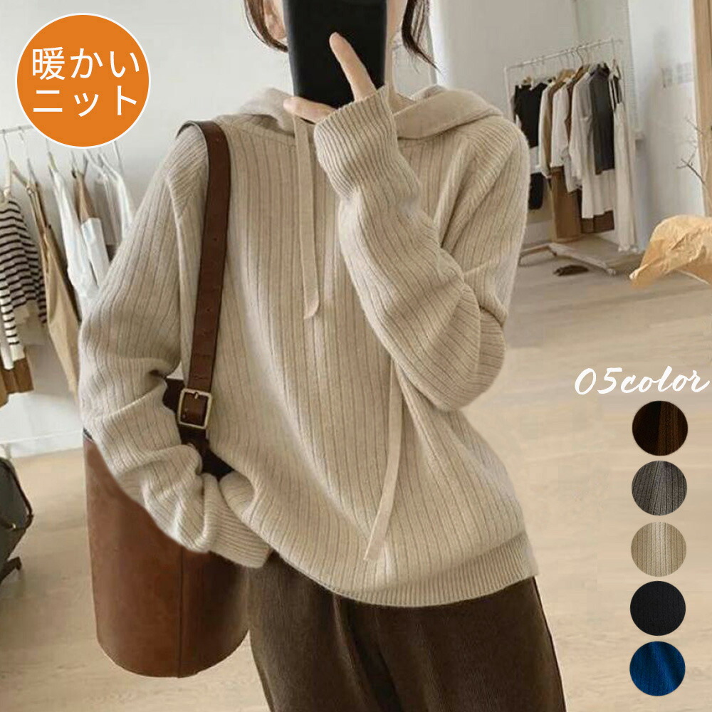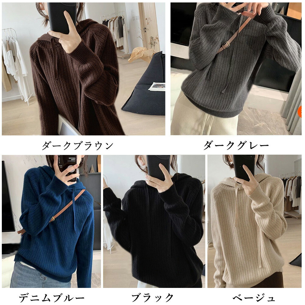 リブニットパーカーレディース韓国トップ レディースファッション 早い者勝ち ダークグレー ダークブラウン デニムブルー ブラック ベージュ