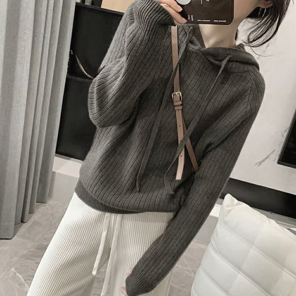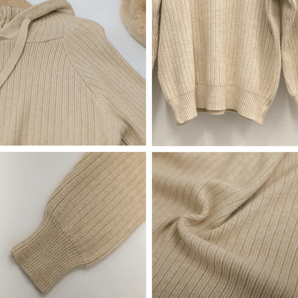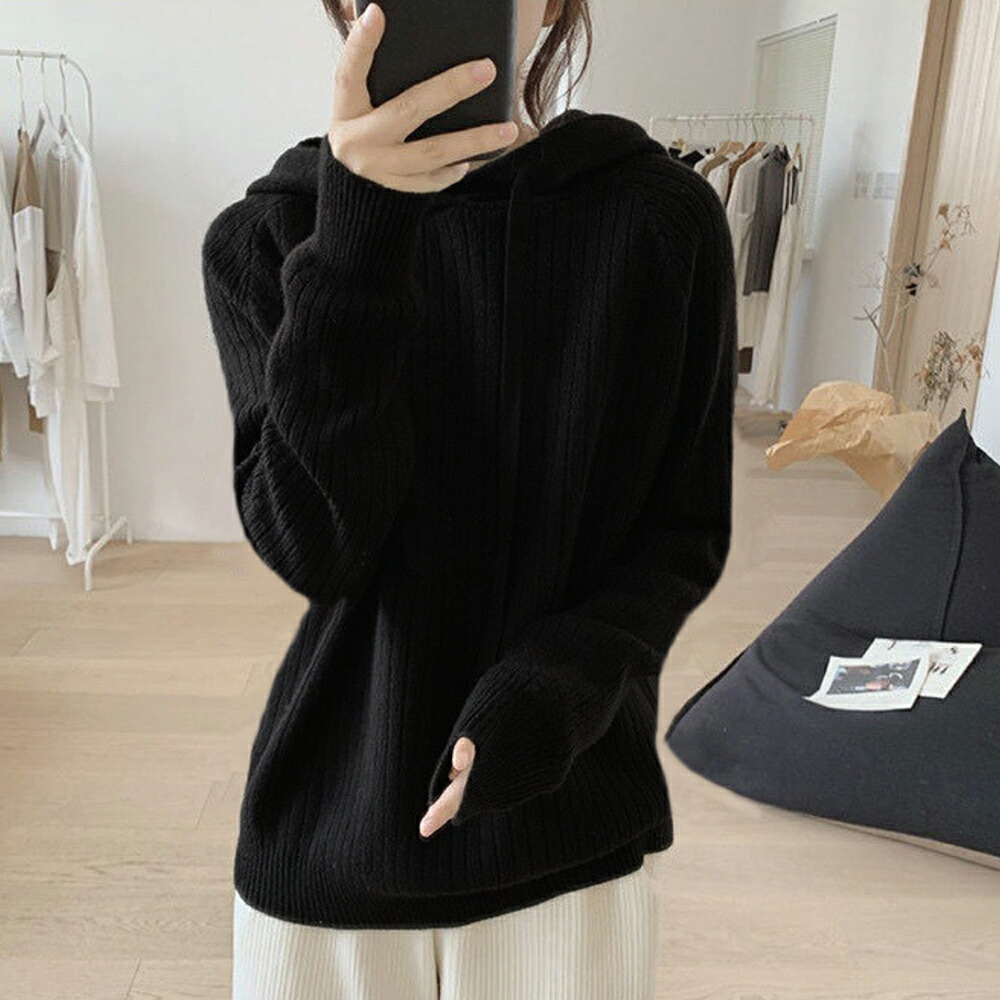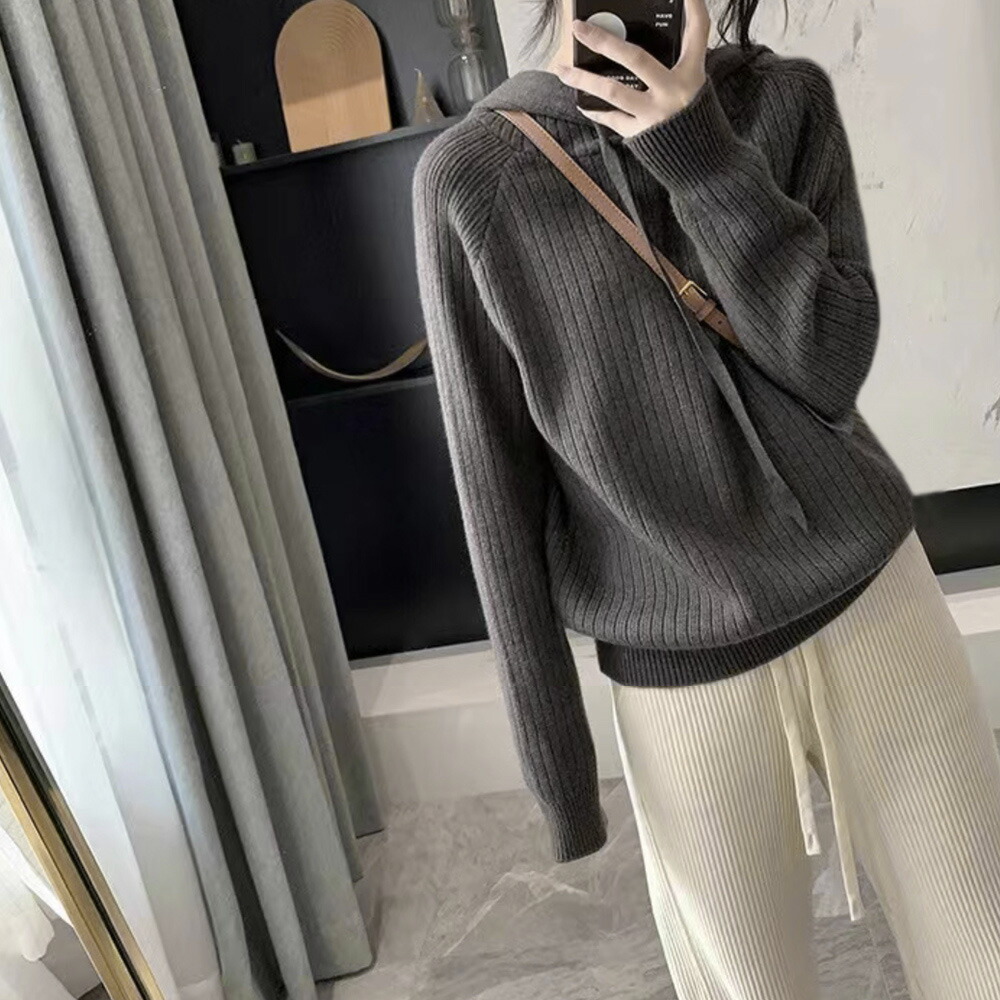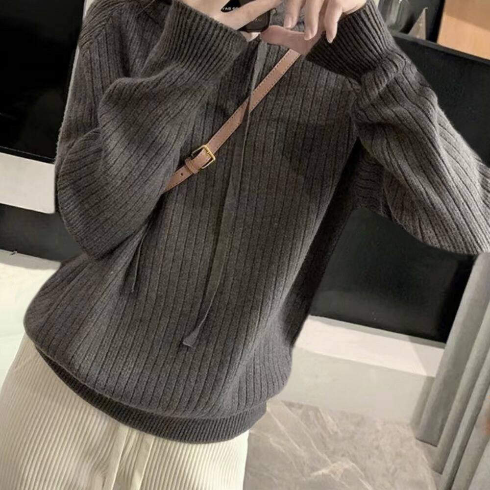 リブニットパーカーレディース韓国トップ レディースファッション 早い者勝ち ダークグレー ダークブラウン デニムブルー ブラック ベージュ