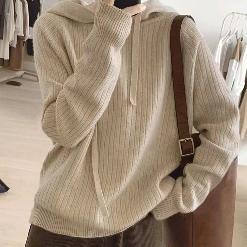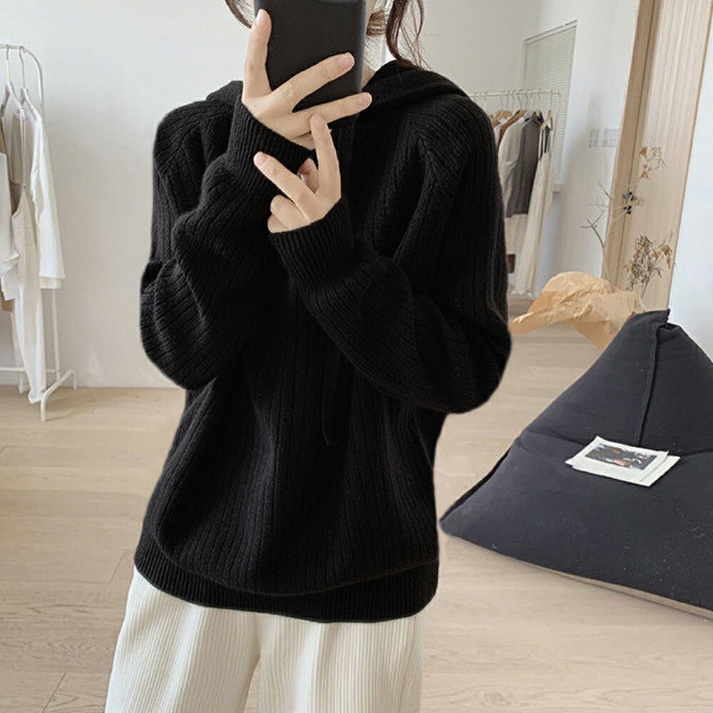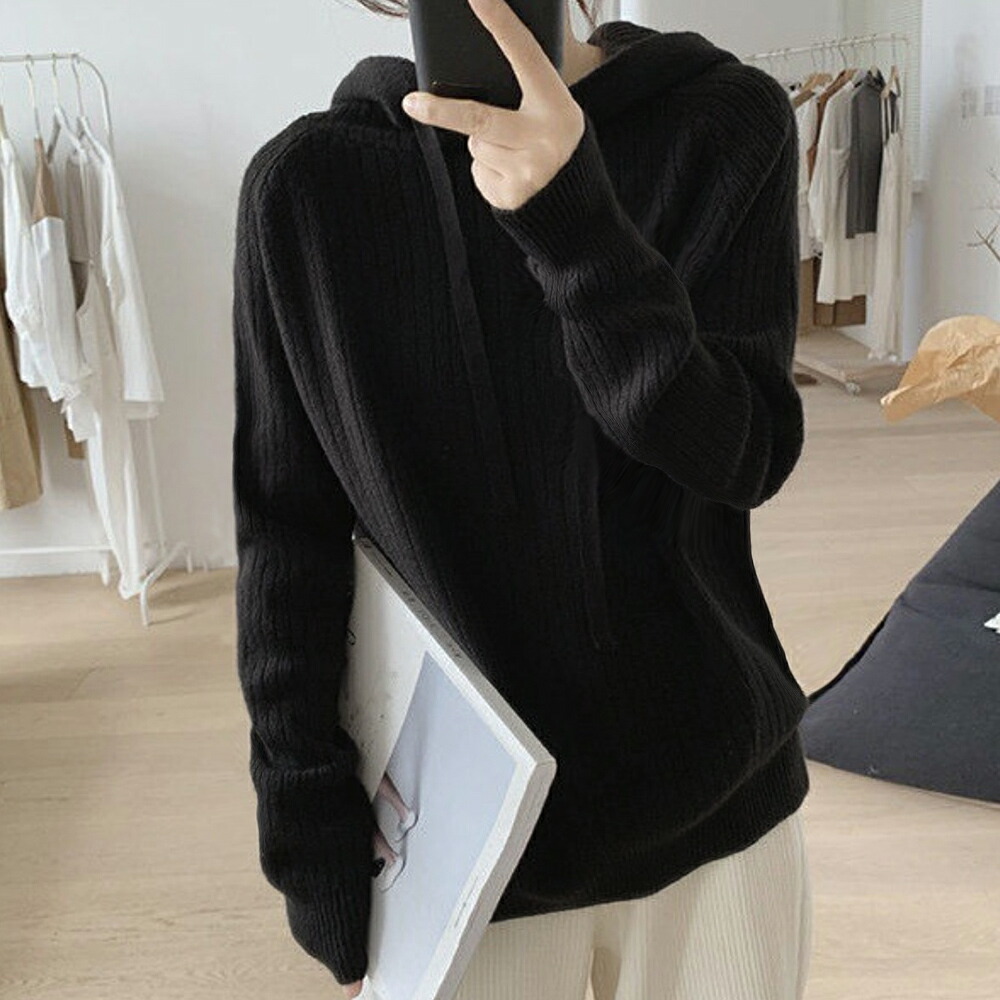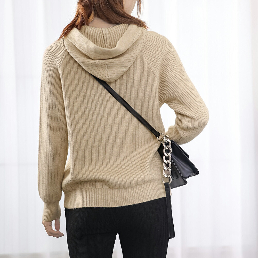 リブニットパーカーレディース韓国トップ レディースファッション 早い者勝ち ダークグレー ダークブラウン デニムブルー ブラック ベージュ