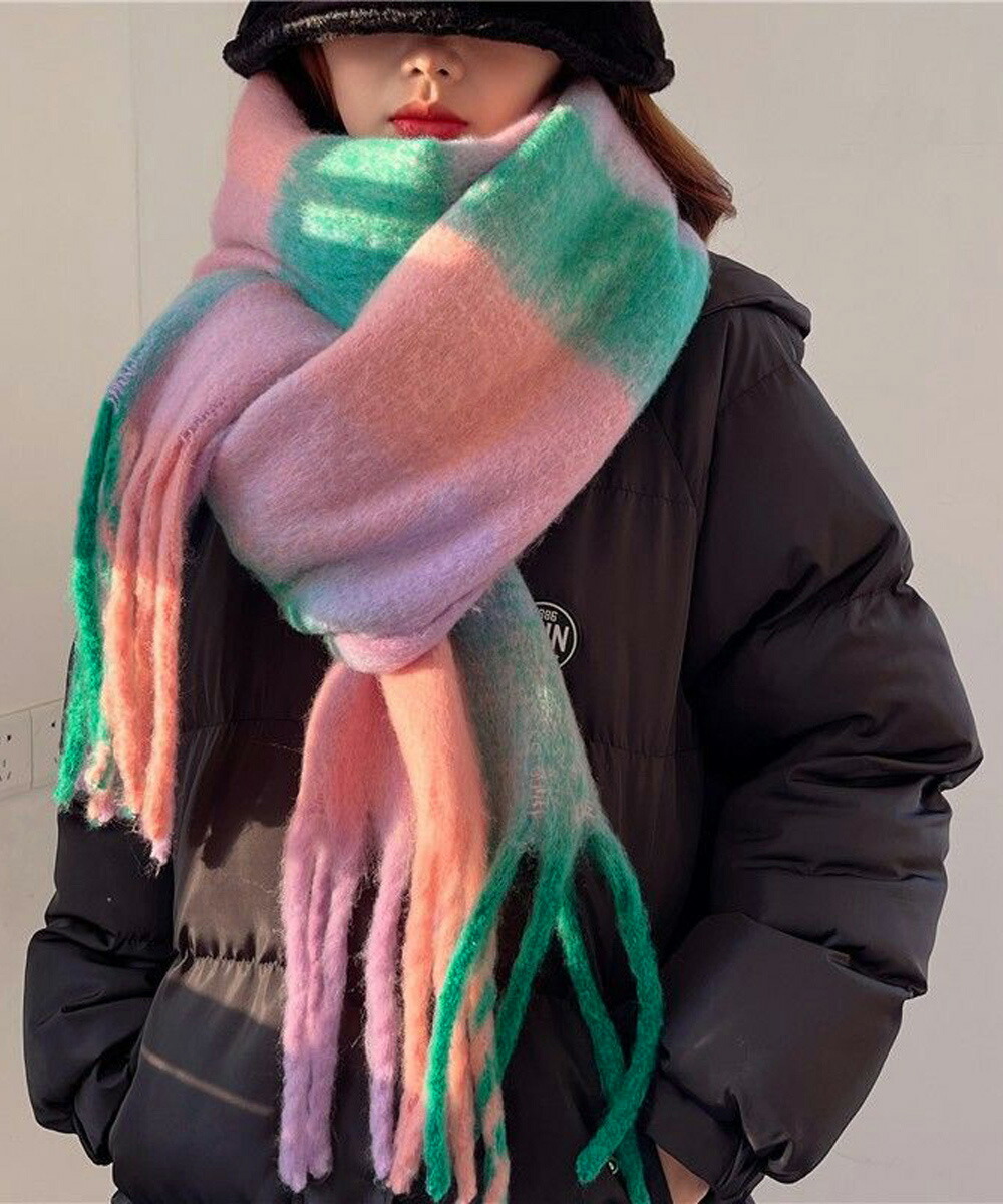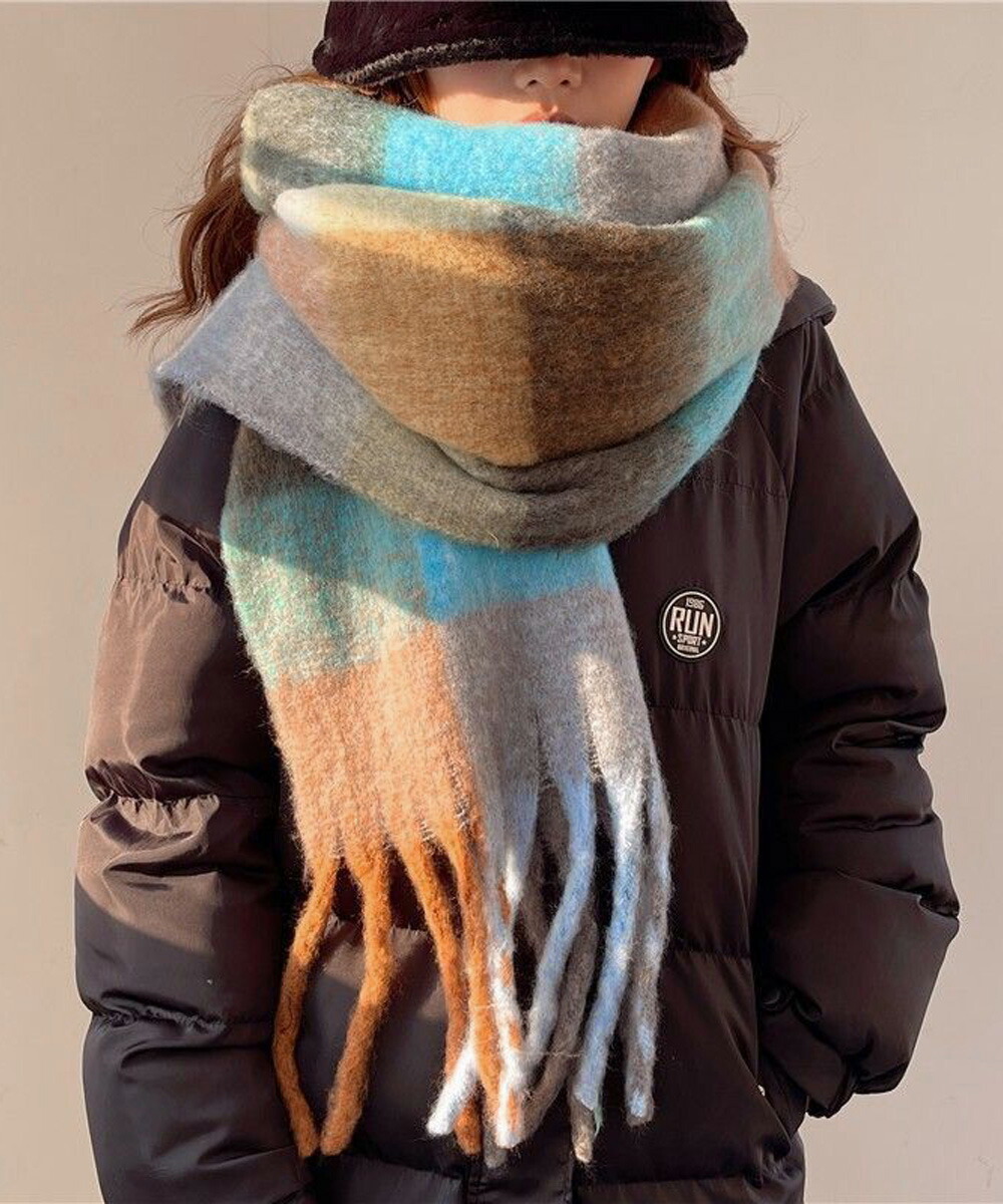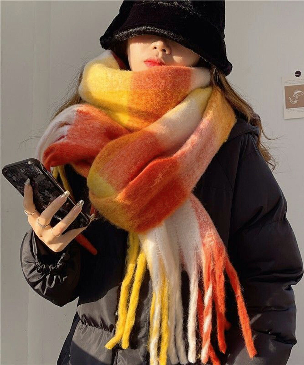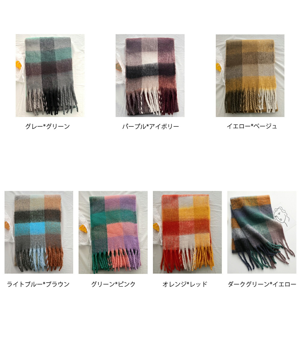 カシミヤ風マフラーチェック柄 大判 厚 バッグ 小物 ブランド雑貨 人気 イエロー*ベージュ オレンジ*レッド グリーン*ピンク グレー*グリーン ダークグリーン*イエロー パープル*アイボリー ライトブルー*ブラウン