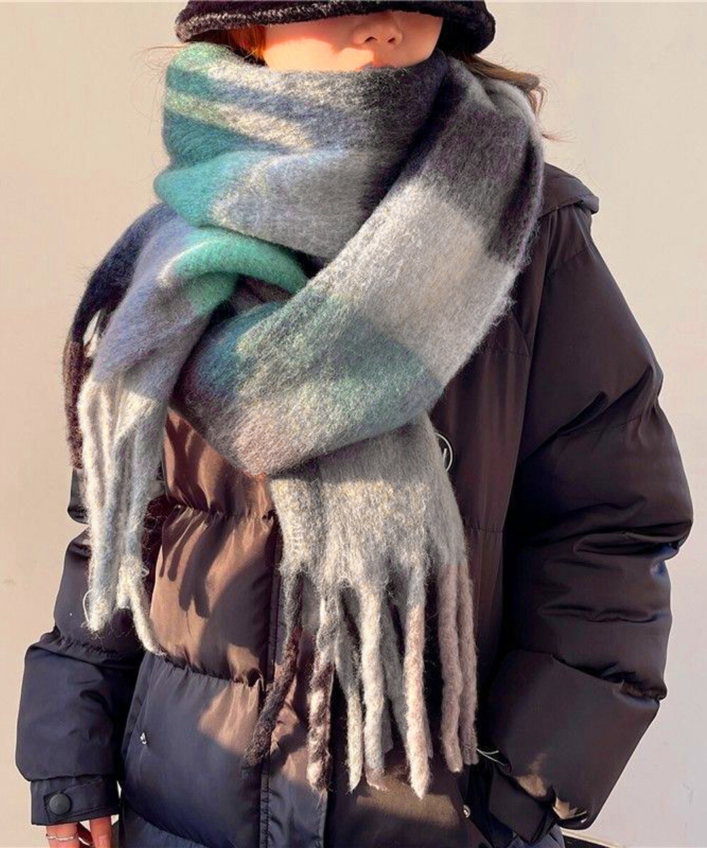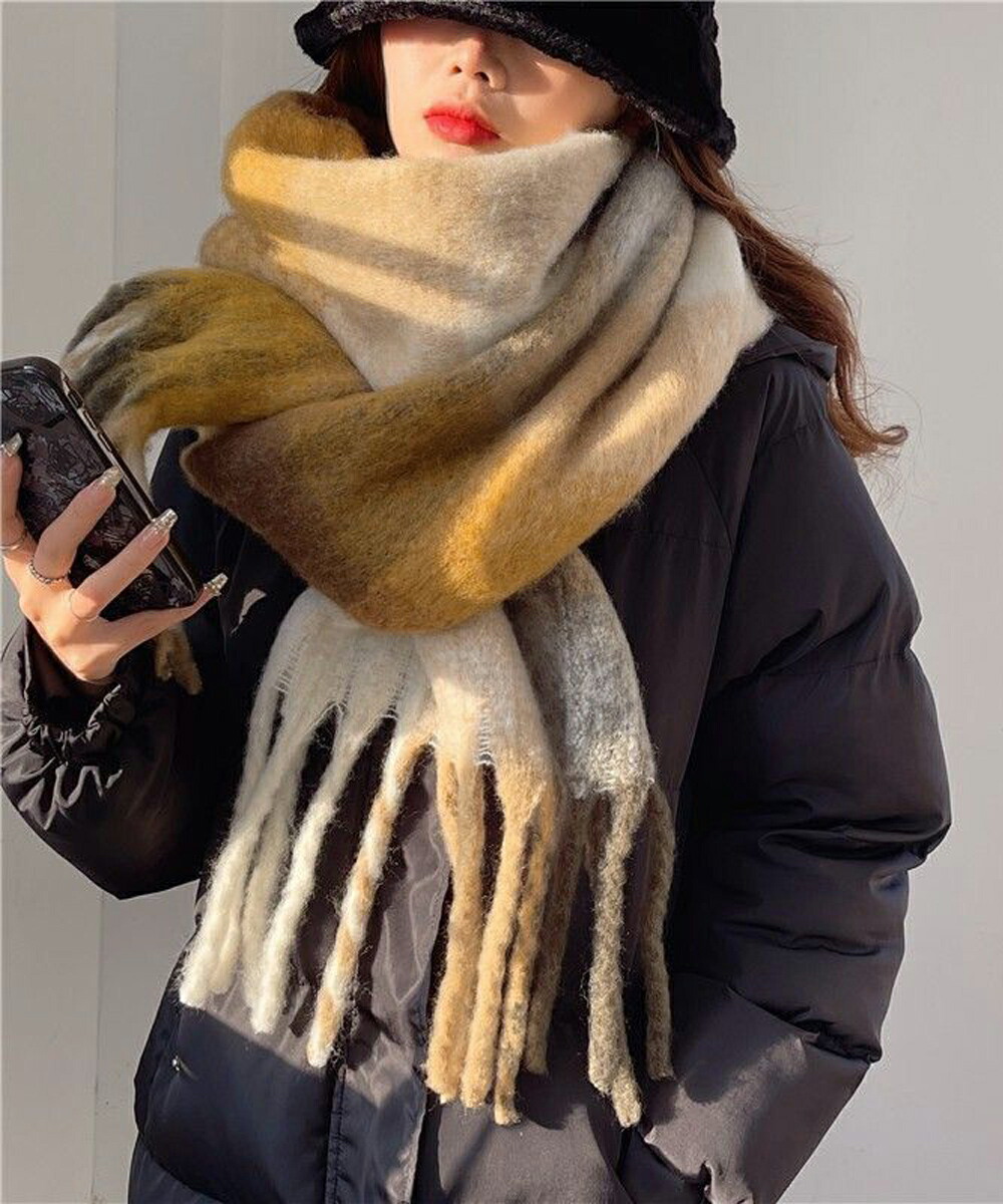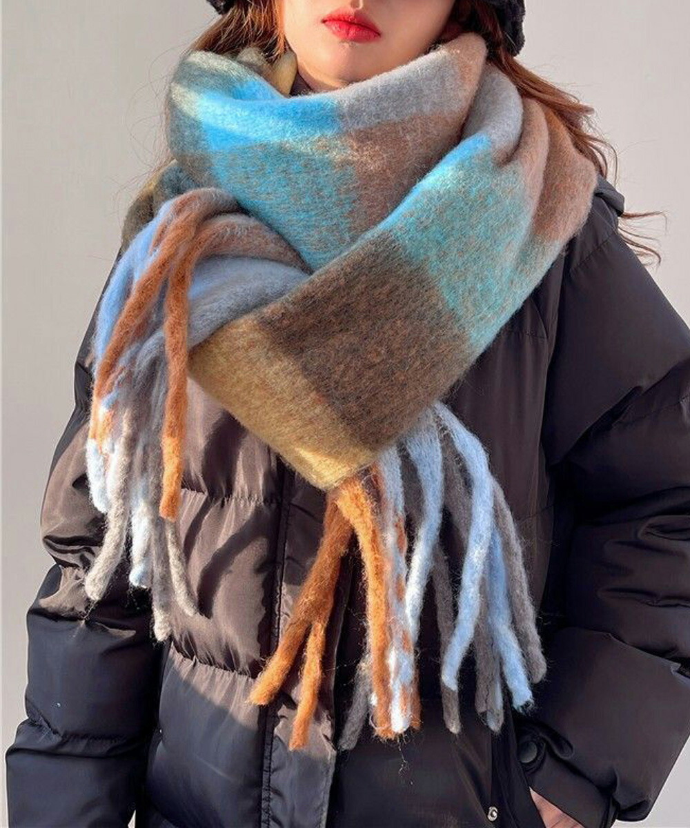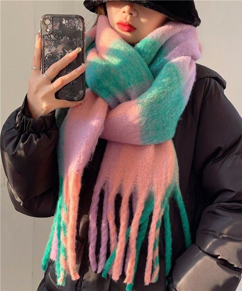 カシミヤ風マフラーチェック柄 大判 厚 バッグ 小物 ブランド雑貨 人気 イエロー*ベージュ オレンジ*レッド グリーン*ピンク グレー*グリーン ダークグリーン*イエロー パープル*アイボリー ライトブルー*ブラウン