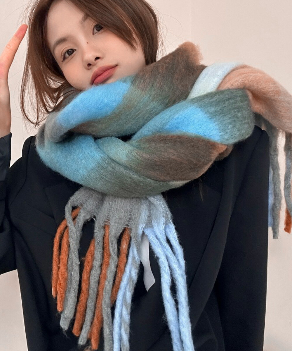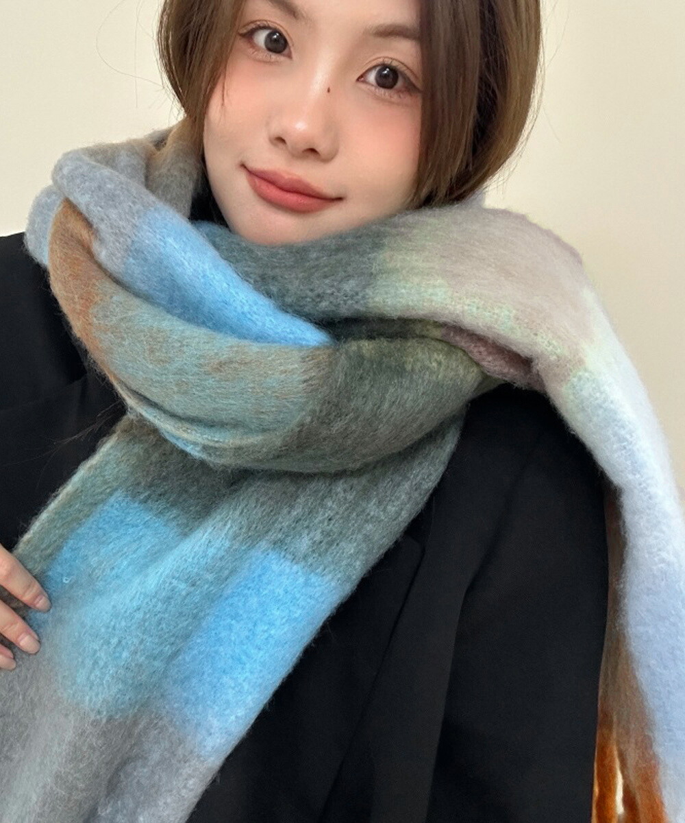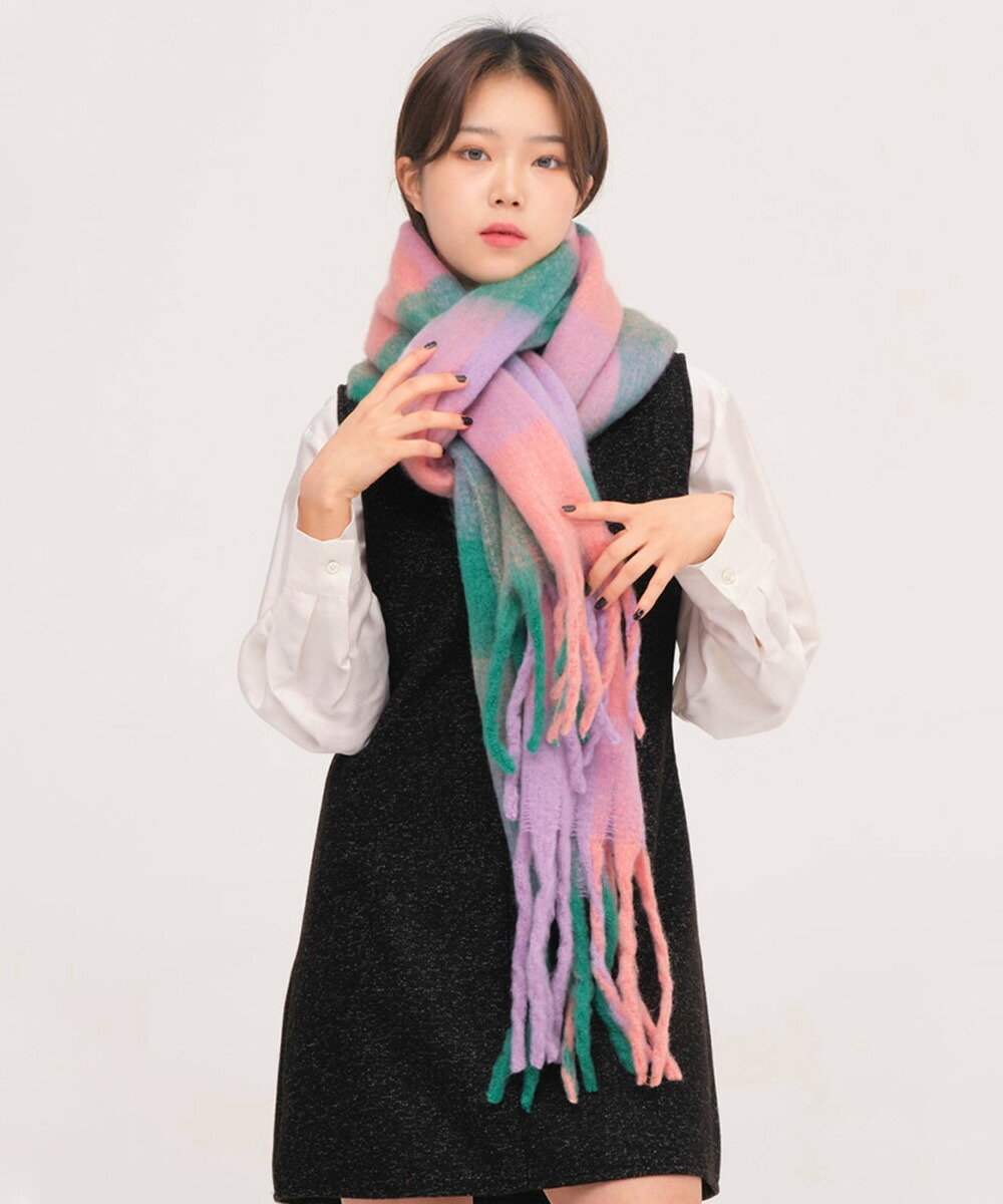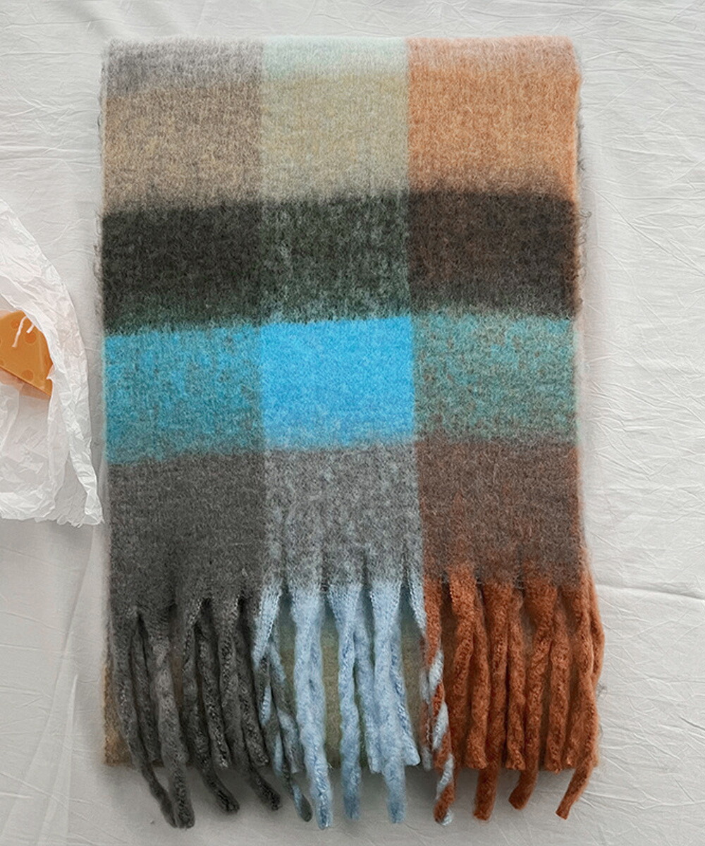 カシミヤ風マフラーチェック柄 大判 厚 バッグ 小物 ブランド雑貨 人気 イエロー*ベージュ オレンジ*レッド グリーン*ピンク グレー*グリーン ダークグリーン*イエロー パープル*アイボリー ライトブルー*ブラウン