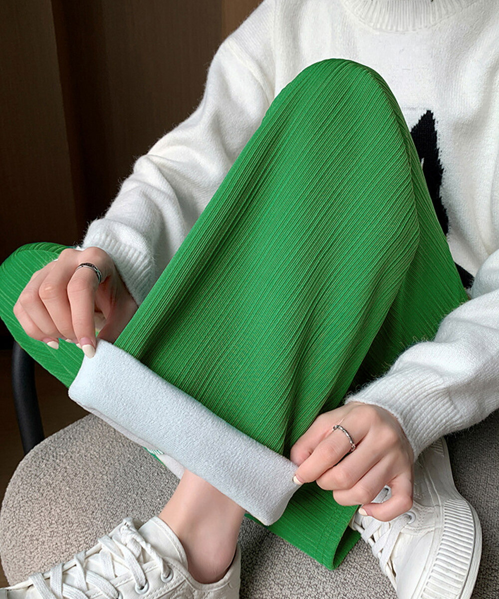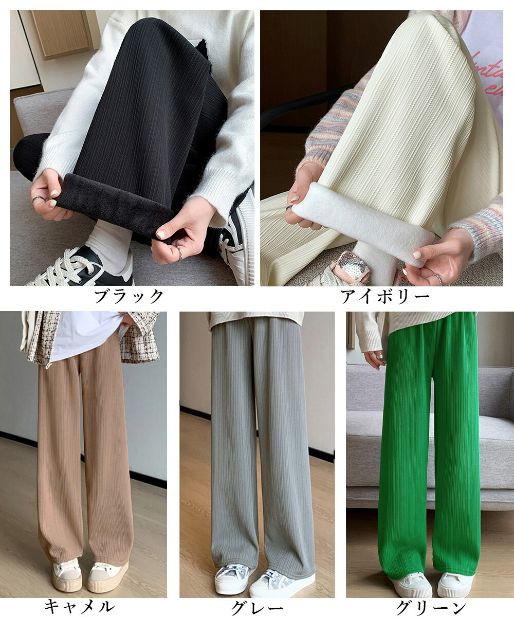 裏起毛ストレートパンツ暖かい レディー レディースファッション 新登場! アイボリー キャメル グリーン グレー ブラック L M XL