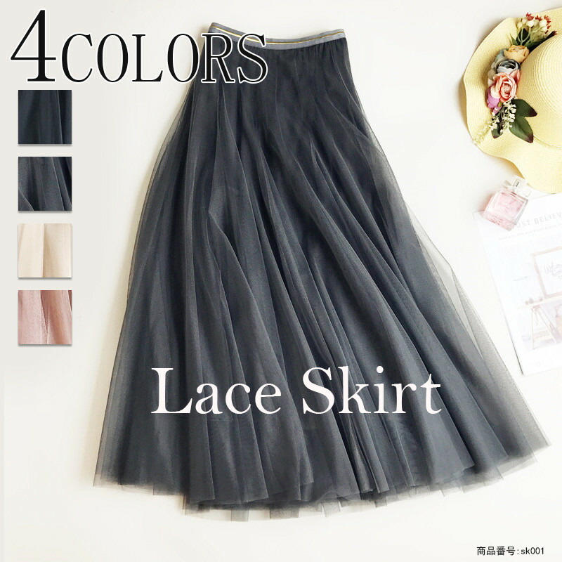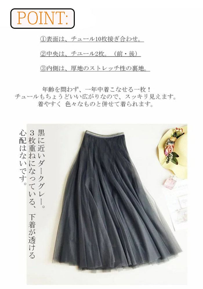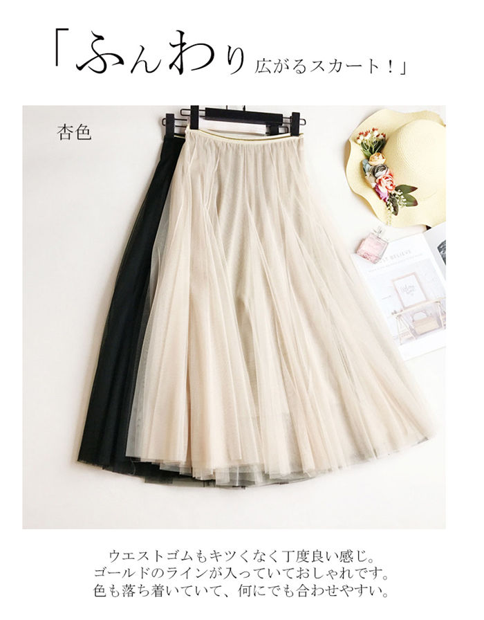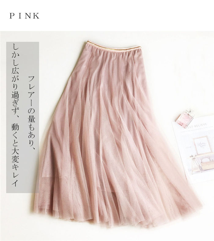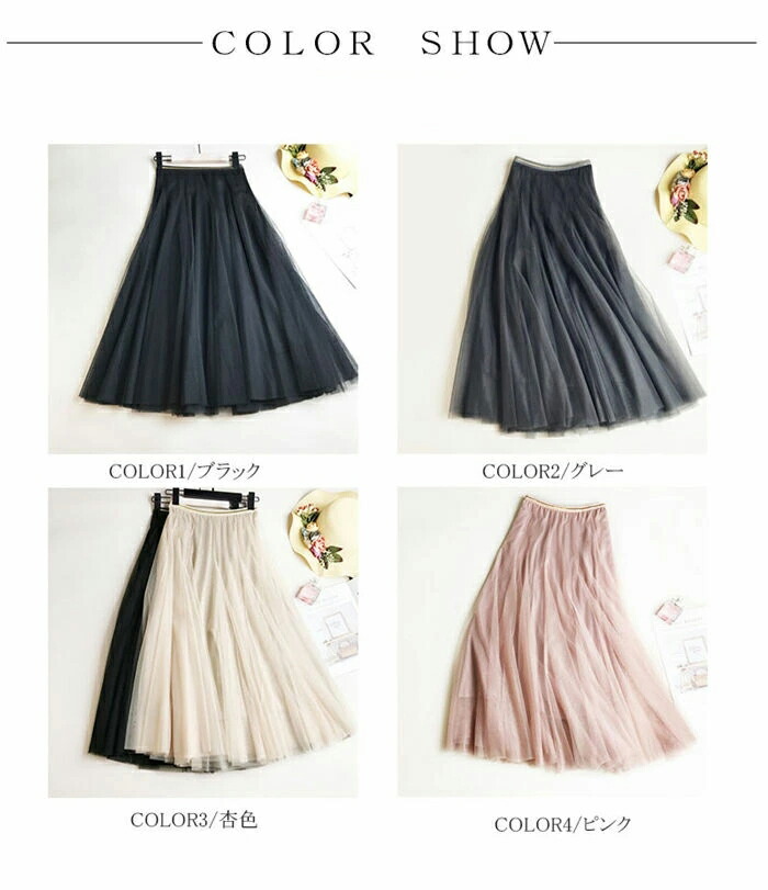 チュールスカート ロング スカート フ ボトムス スカート 特集 COLOR1ブラック COLOR2グレー COLOR3杏色 COLOR4ピンク COLOR5ライトグレー