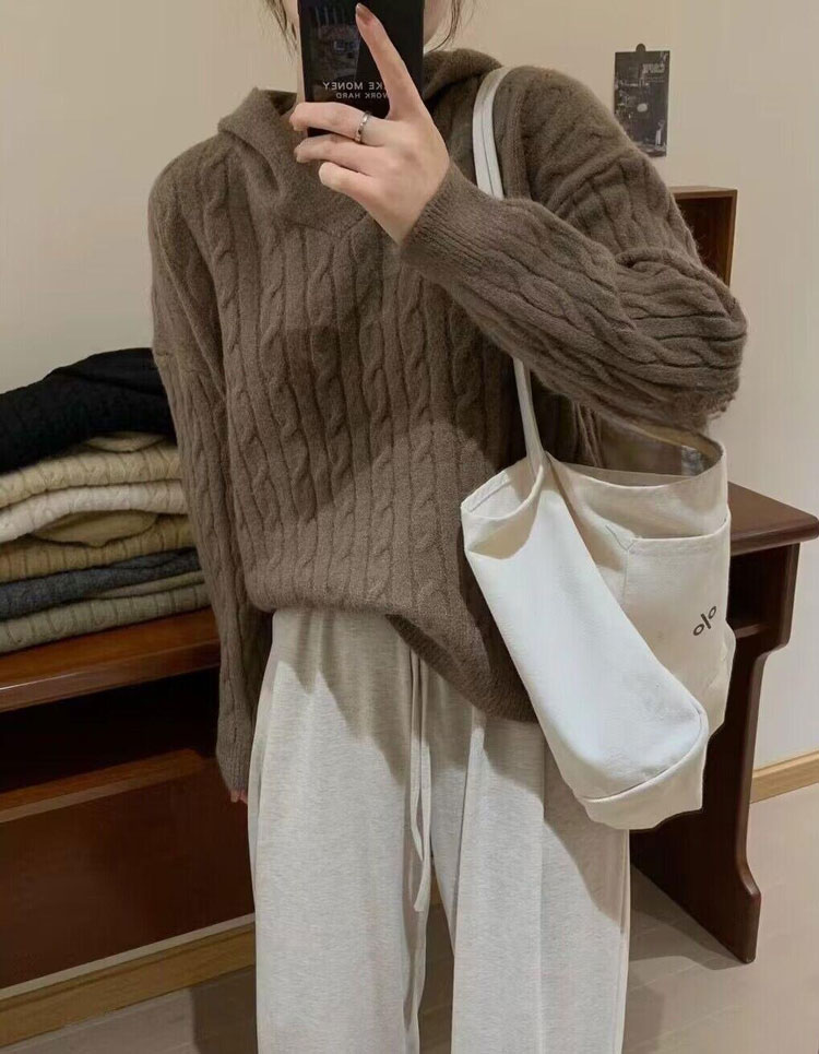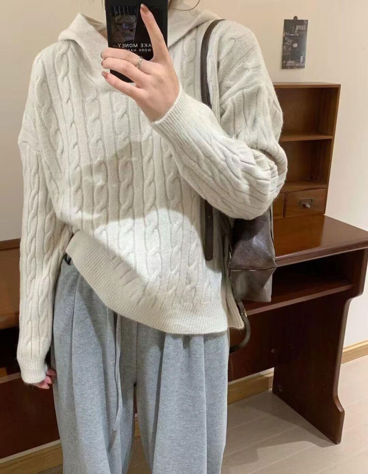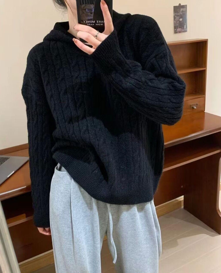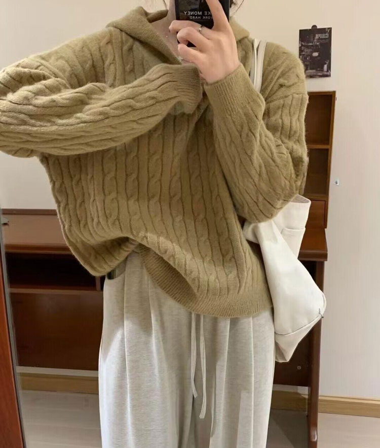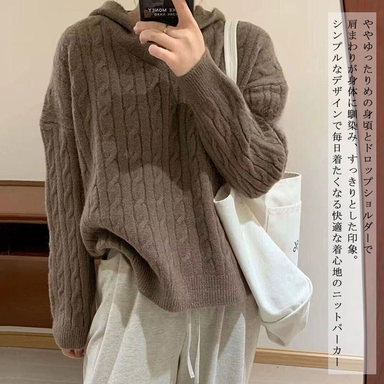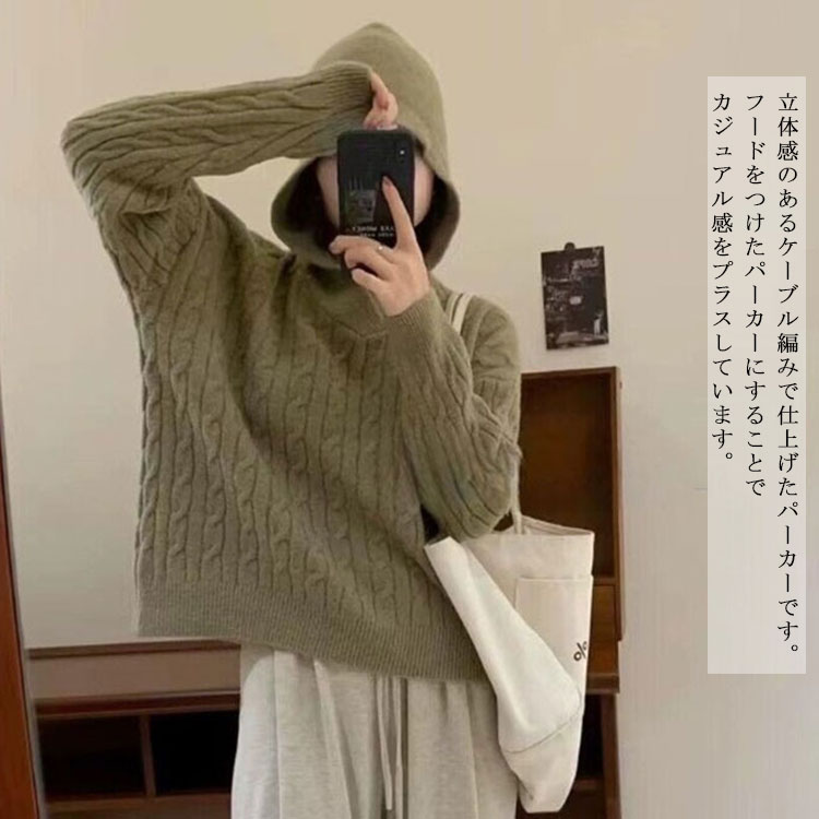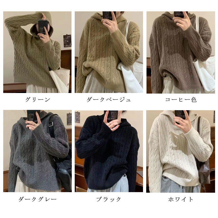 ケーブル編み ニットパーカー パーカー レディースファッション 続々入荷中 ブラック ダークグレー コーヒー色 ダークベージュ グリーン ホワイト