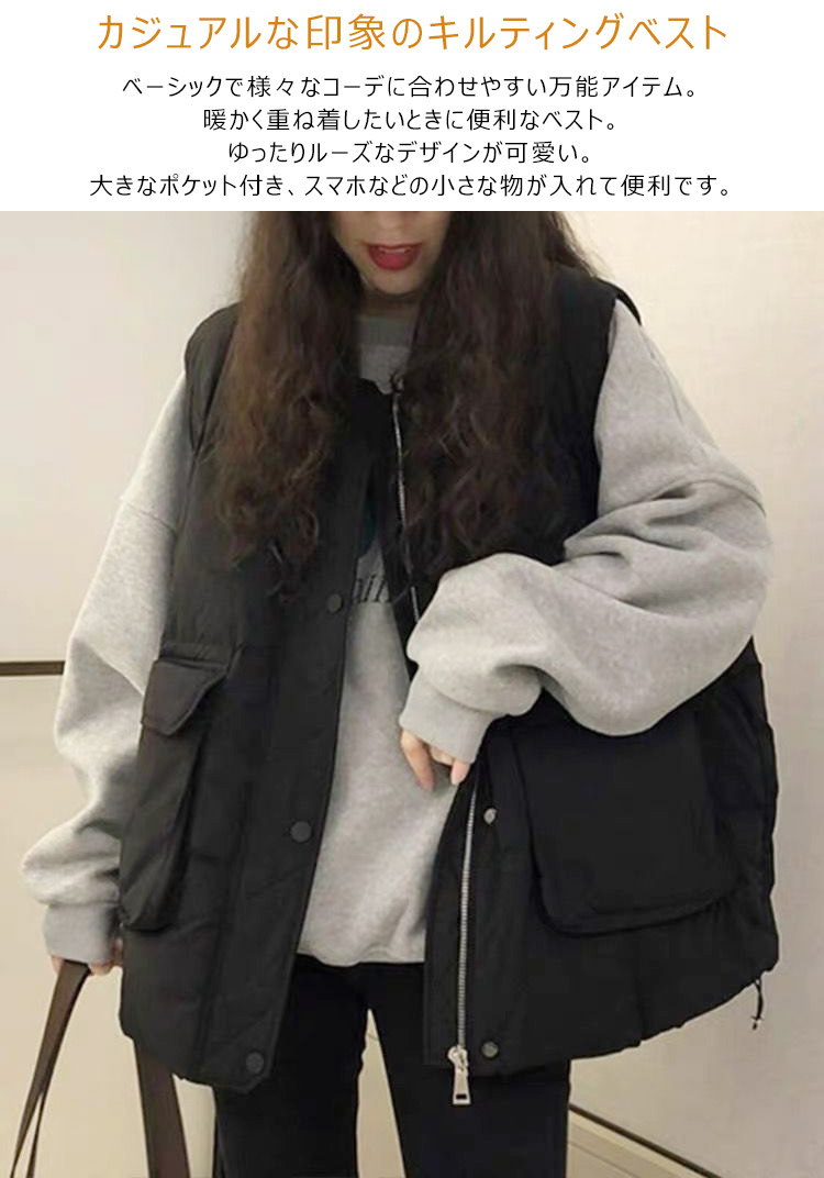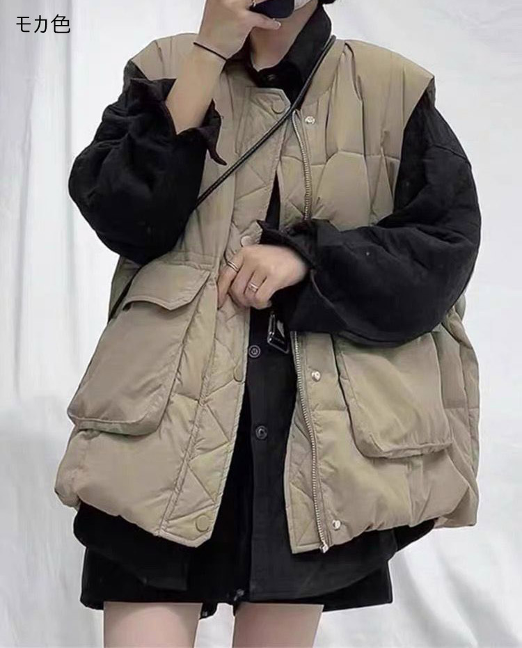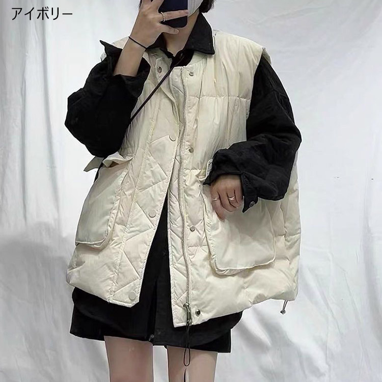 中綿ベスト 秋冬 大きいサイズ レディ トップス ベスト 早い者勝ち アイボリー モカ色 ブラック M L XL 2XL