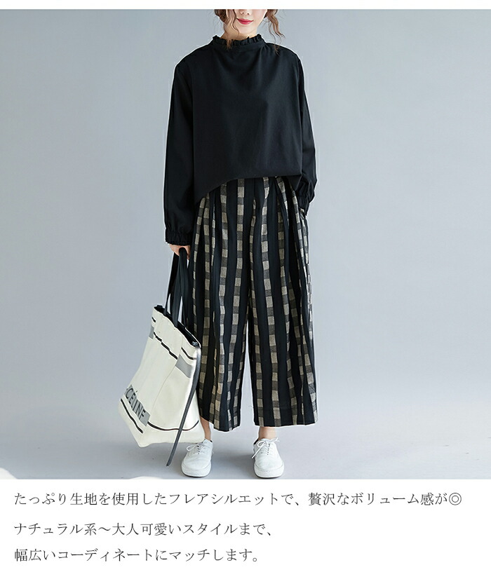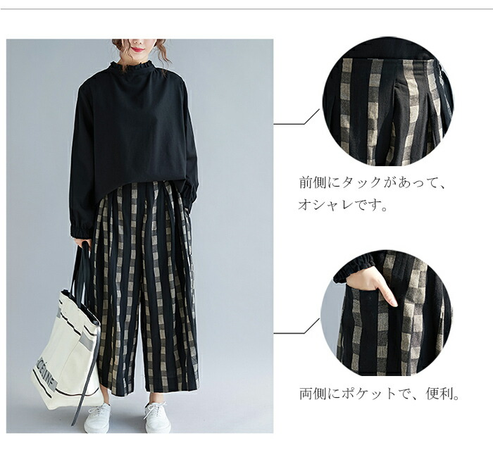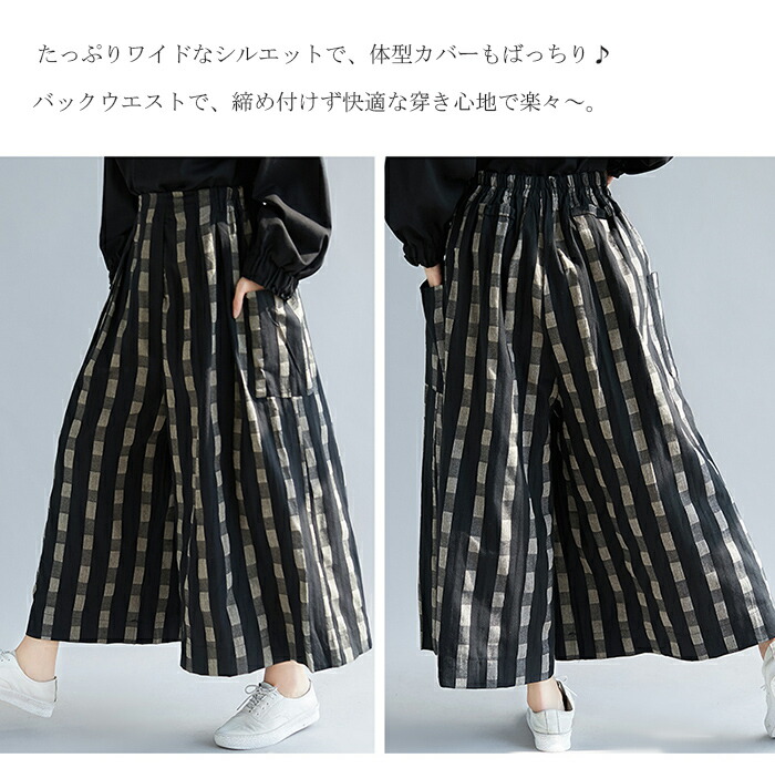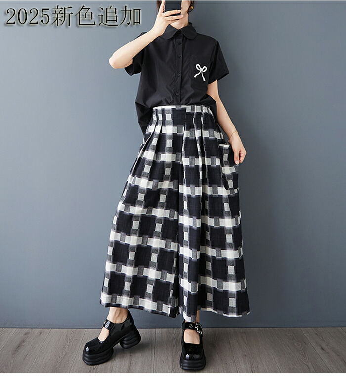 ワイドパンツ レディース チェック リ ボトムス パンツ 超目玉商品 黒 コーヒー NEW:2025新色