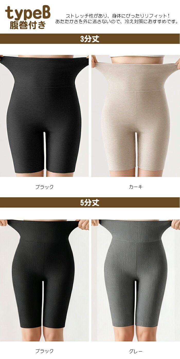 腹巻きパンツ レディース 温活 腹巻 レディース インナー 下着 腹巻 新作 3分丈 5分丈 7分丈 ブラック グレー カーキ ピンク B ブラック(腹巻) B グレー(腹巻) B カーキ(腹巻)