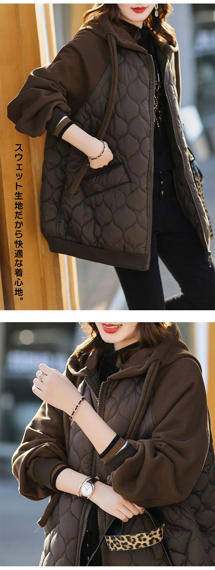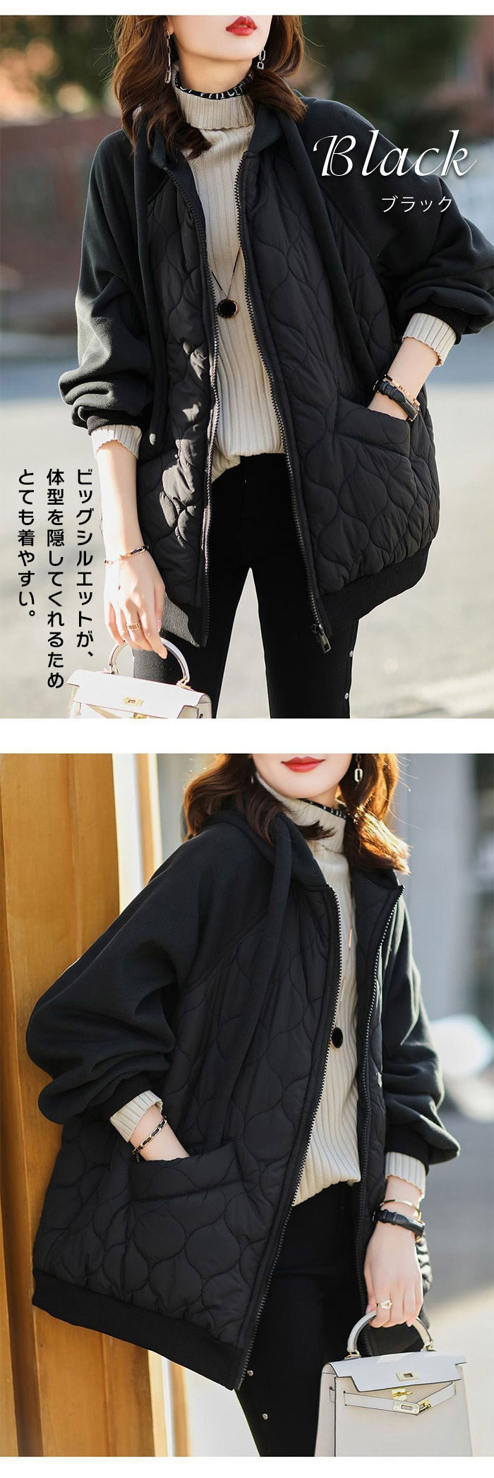 ブルゾン レディース 秋冬 中綿 ダウン 長袖 キルティングトップス アウター 厚手 ゆったり オーバーサイズ 大きめ ウインドブレーカー ジップアップ ジャンパー パー マウンテンパーカー