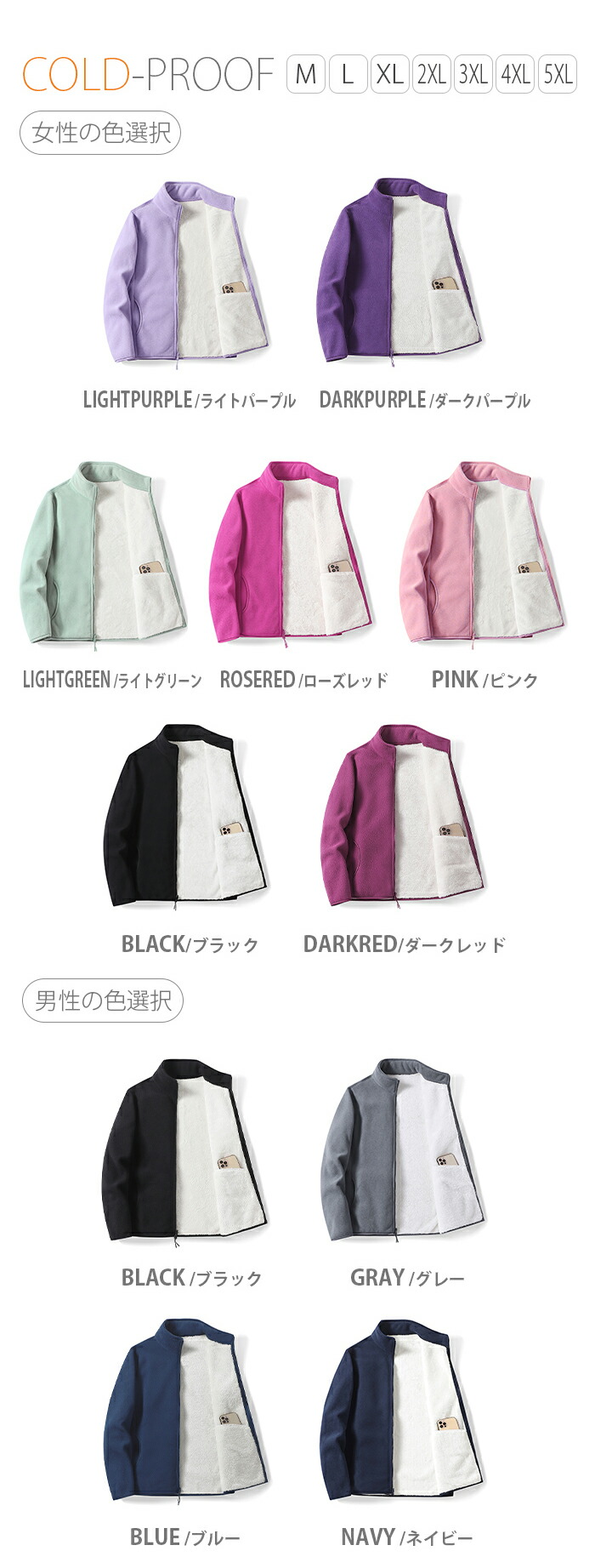フリース ジャケット ブルゾン アウタ レディースファッション 豊富 女ライトパープル 女ダークパープル 女ライトグリーン 女ローズレッド 女ピンク 女ブラック 女ダークレッド 男ブラック 男グレー 男ブルー 男ネイビー M L XL 2XL 3XL 4XL 5XL