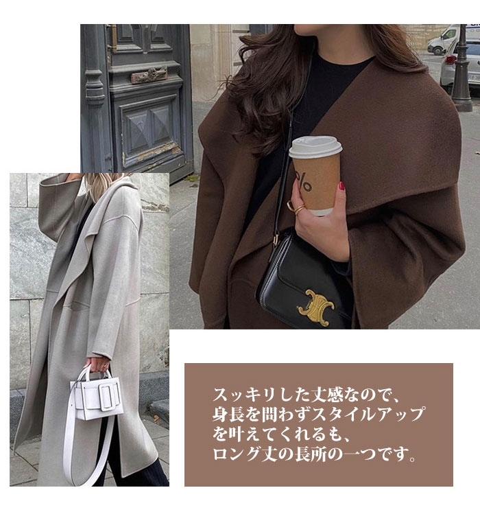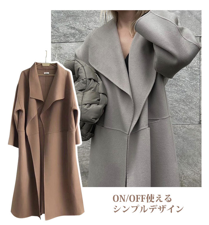 ロングコート チェスターコート レディース コート ウール95% 秋冬 無地 両面ウール アウター ロング丈 暖かい 大人 秋 冬 きれいめ 大きいサイズ ドロップショルダ ゆったり大人