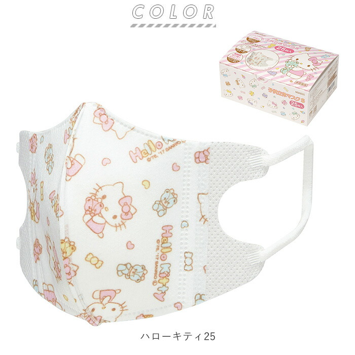 マスク 子供 不織布 25枚入 通販 ハローキティ25 マイメロディ25 はらぺこあおむし25 いないいないばあっ25 ディノサウルス25