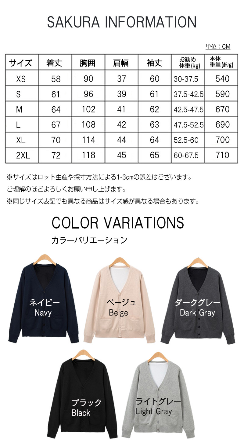 カーディガン 制服 裏起毛 Vネック トップス カーディガン ボレロ 早い者勝ち ベージュ ライトグレー ダークグレー ネイビー ブラック XS S M L XL 2XL