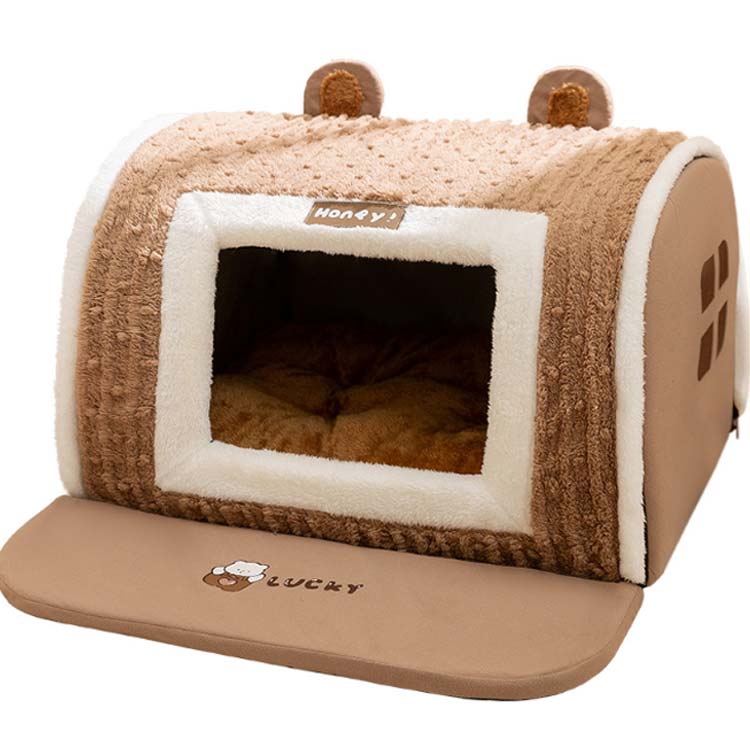 ペットハウスドーム型ペットベッドペット 猫用品 ベッド マット 寝具 ベッド 人気 ブラウン(くま耳) グレー(くま耳) S M L XL