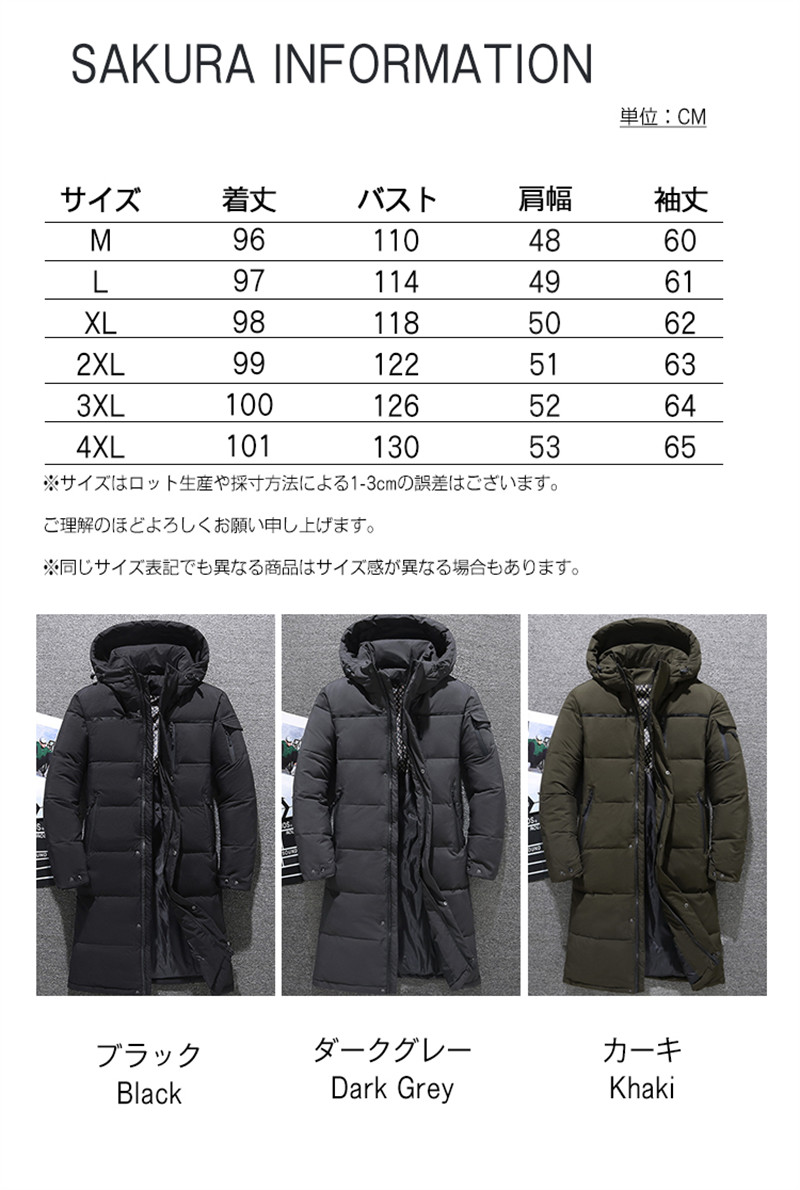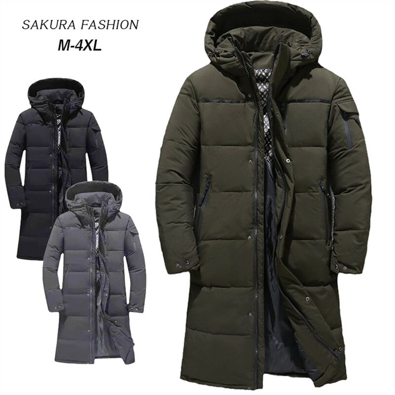 ダウンコート メンズ 膝下 ダウン90 メンズファッション 続々入荷中 ブラック ダークグレー カーキ M L XL 2XL 3XL 4XL