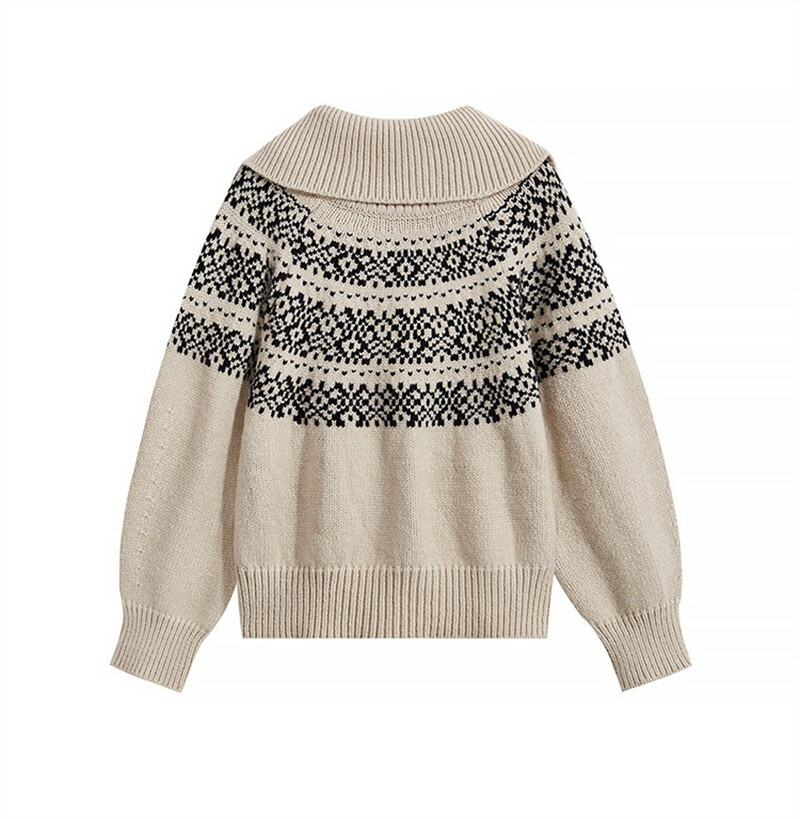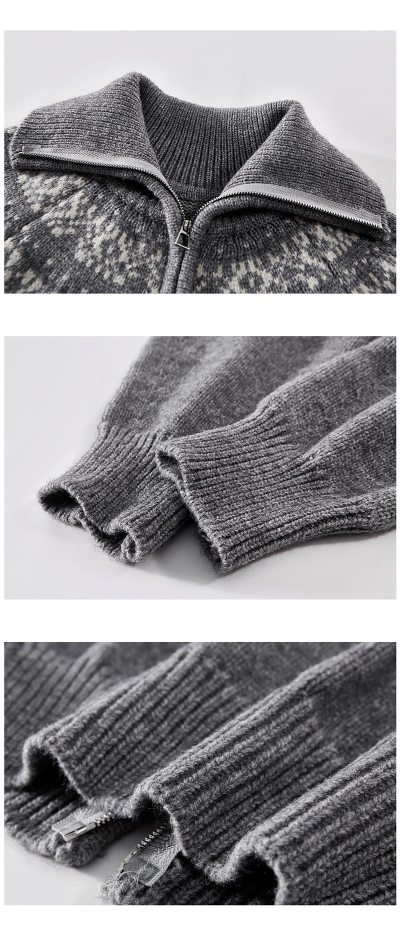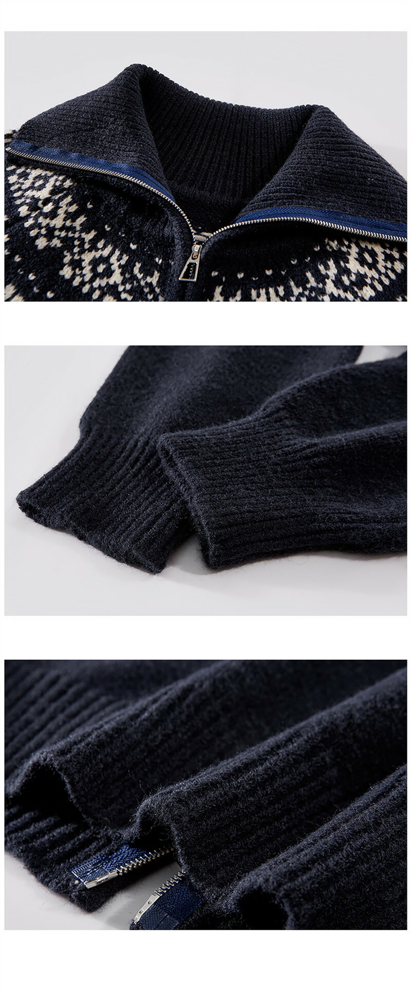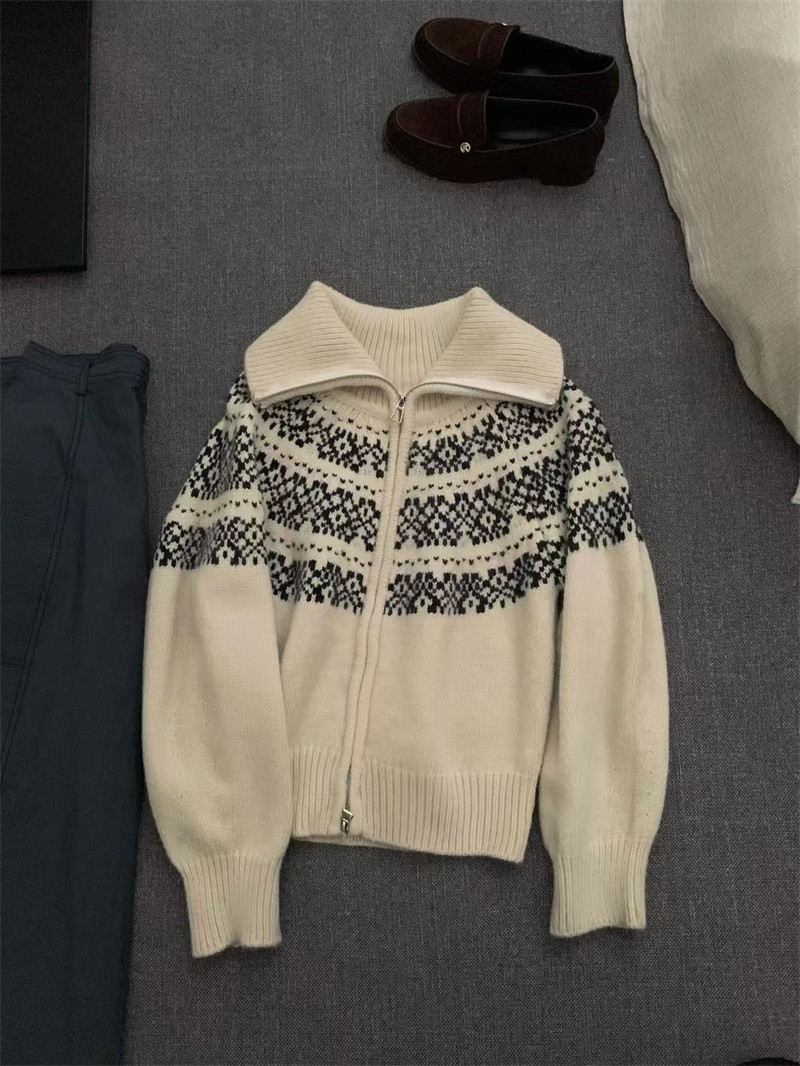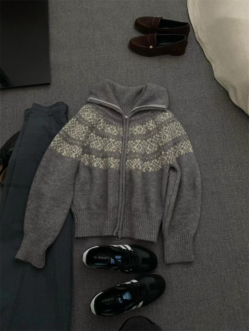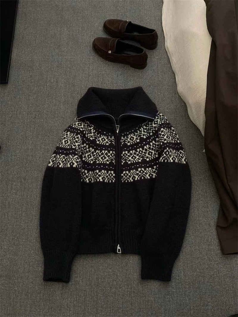カーディガン ニット レディース トップス カーデガン ニットカーデ カーデ 羽織り 上着 長袖 ハイネック 立ち襟 ノルディック柄 厚手 軽い きれいめ ゆったり 冬 リブニット ダブルジップ 秋