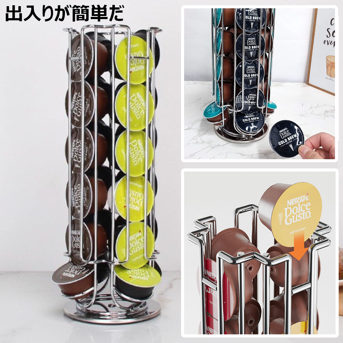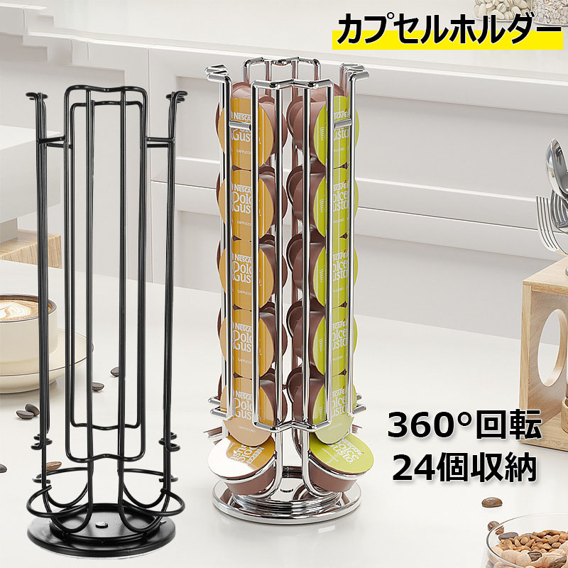 カプセルホルダー 24個収納 ドルチェ コーヒー お茶用品 その他 続々入荷中 ブラック シルバー