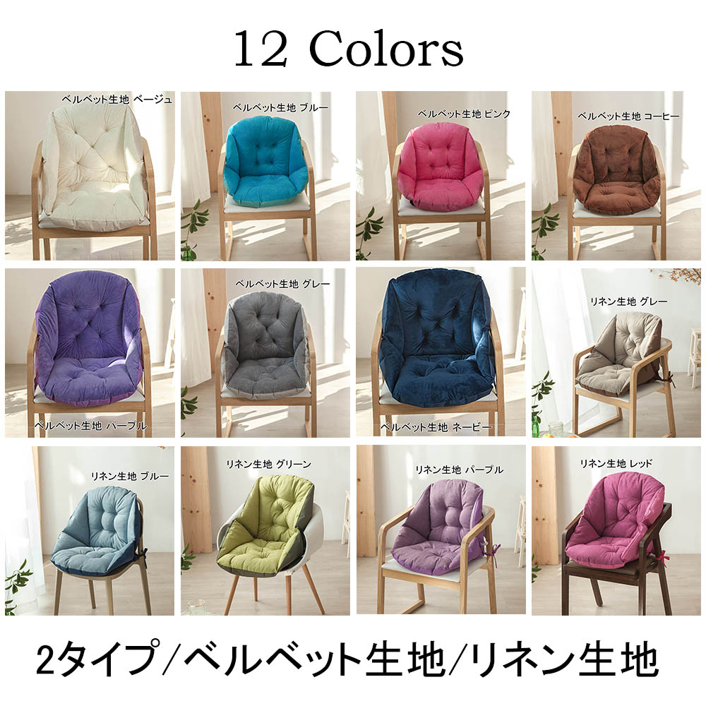 クッション 背もたれ 椅子 座布団 腰 ベルベット生地ベージュ ベルベット生地パープル ベルベット生地ネービー ベルベット生地コーヒー ベルベット生地ブルー ベルベット生地ピンク ベルベット生地グレー リネン生地レッド リネン生地グレー リネン生地グリーン リネン生地パープル リネン生地ブルー 40x48cm 48x52cm