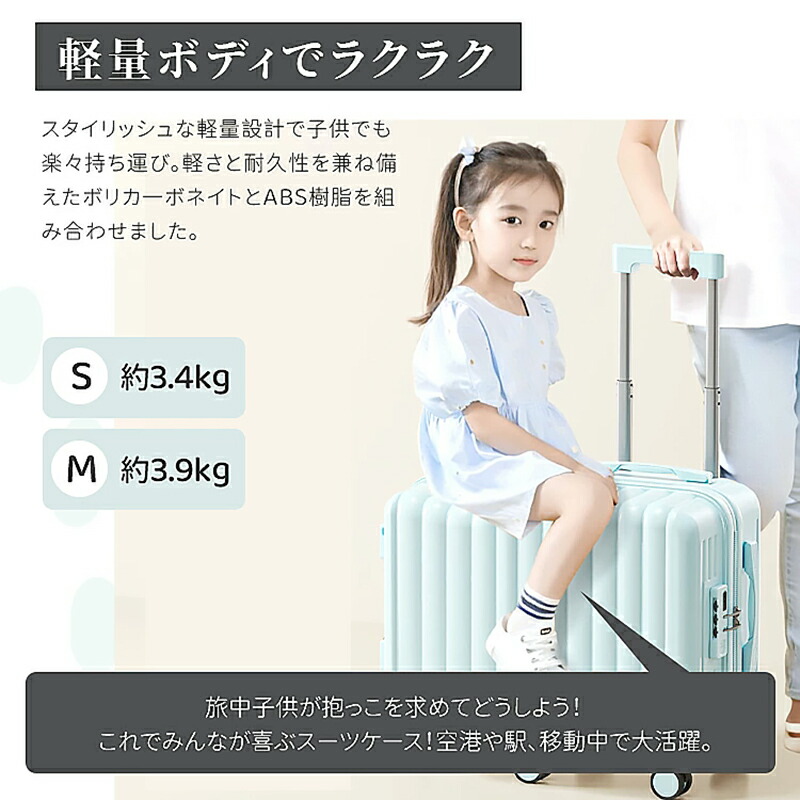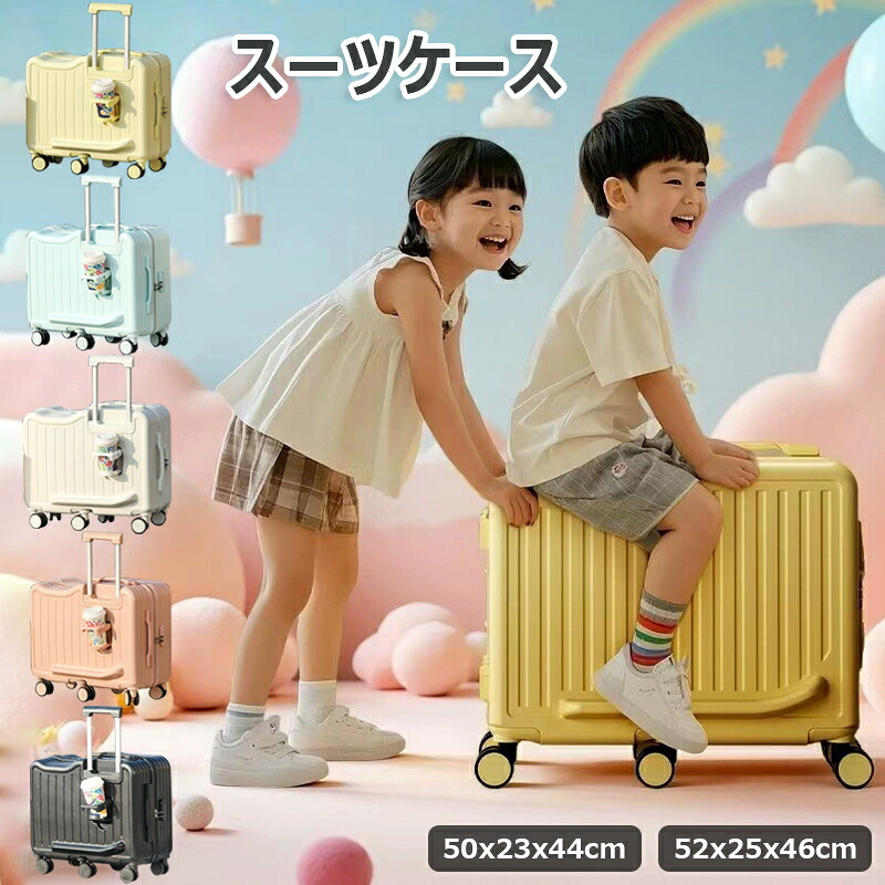 スーツケース キッズトラベル 子供が乗 バッグ スーツケース キャリーバッグ 特集 ホワイト イエロー ブルー ピンク ブラック S:50*23*44cm M:52*25*46cm