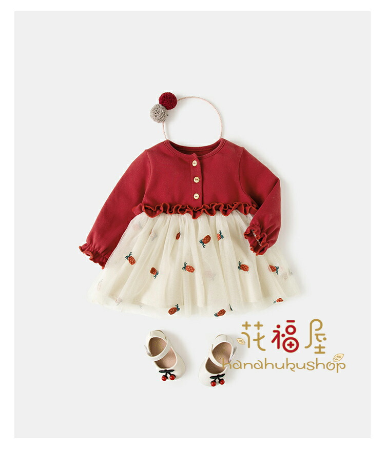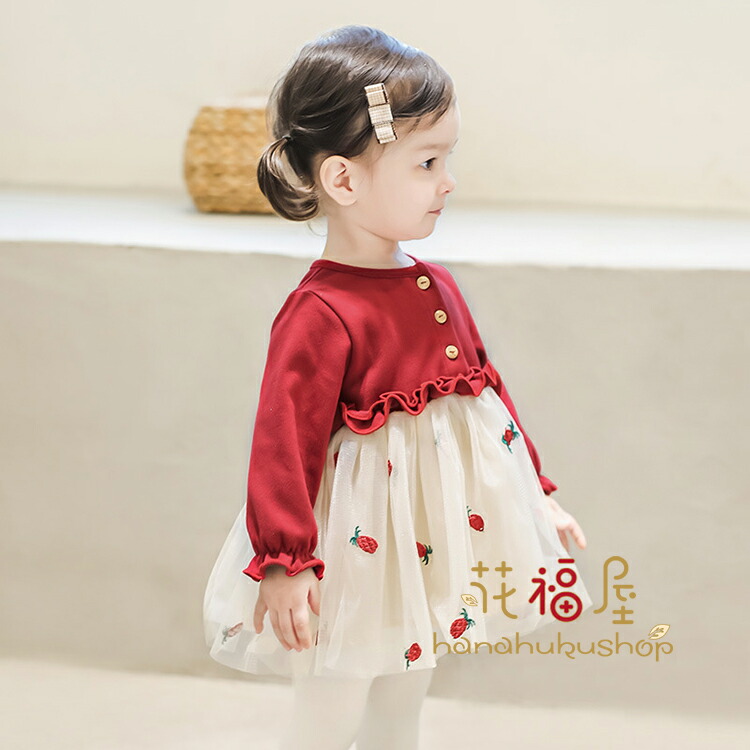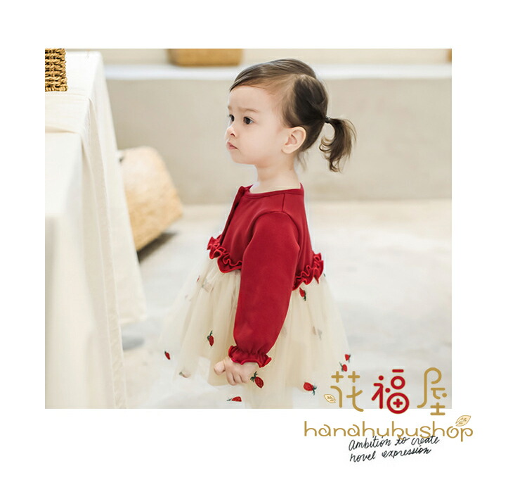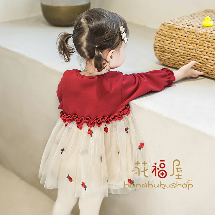 綿100% ワンピース 長袖 七五三 キッズ ワンピース 早い者勝ち レッド レッド 裏起毛 80cm 90cm 100cm 110cm 120cm 130cm 140cm