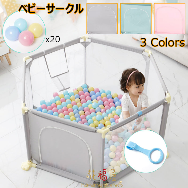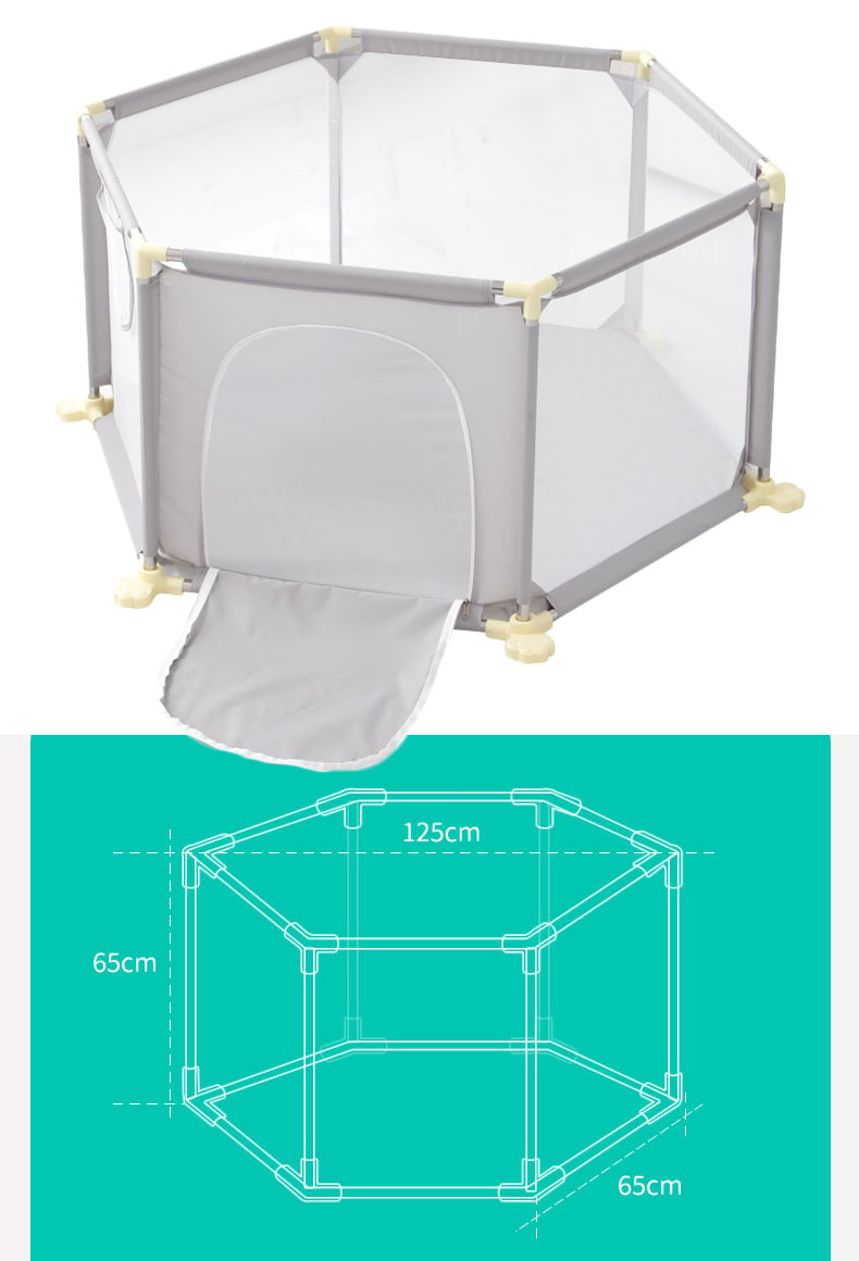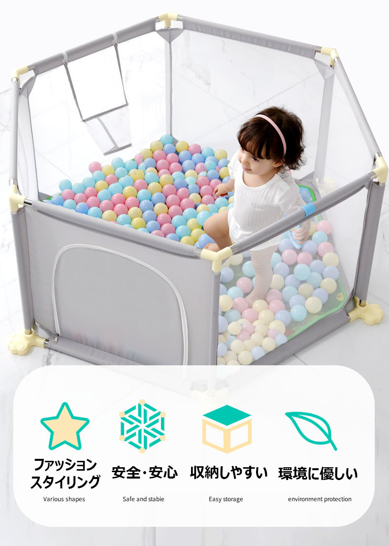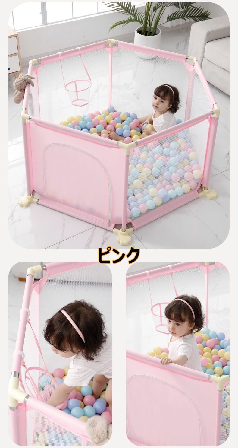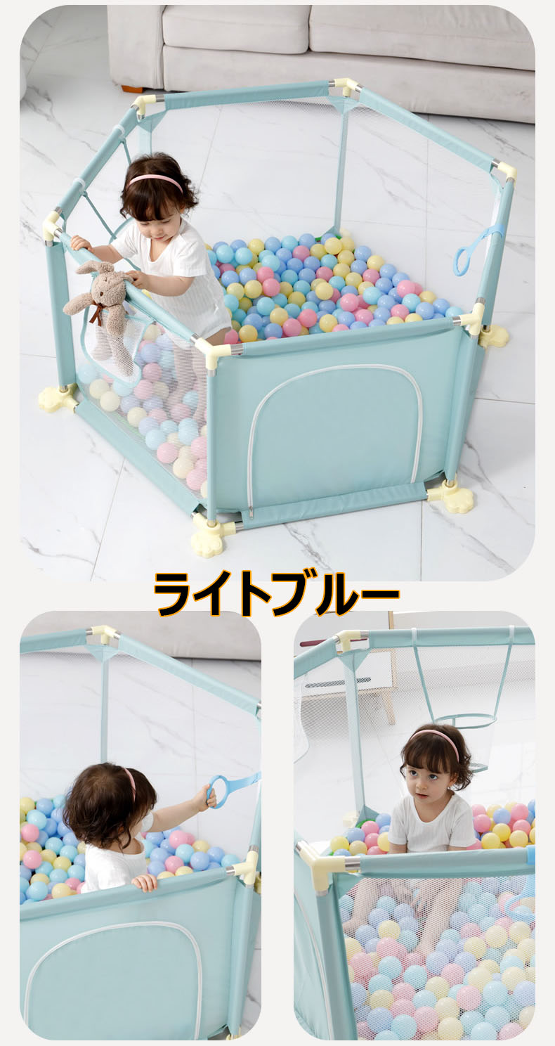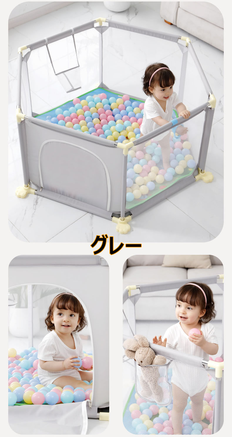 ベビーサークル メッシュ 扉付き 六角 おもちゃ ゲーム 通販 グレー ライトブルー ピンク
