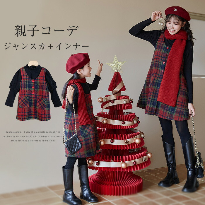 ジャンパースカート レディース チェック柄 親子 ペア ジャンスカ コーデ 親子ペア ロング丈 女の子 ママ 娘 おそろい 裏起毛 ワンピース インナートップス 子供服 秋 冬 大きいサイズ 春