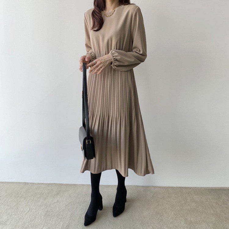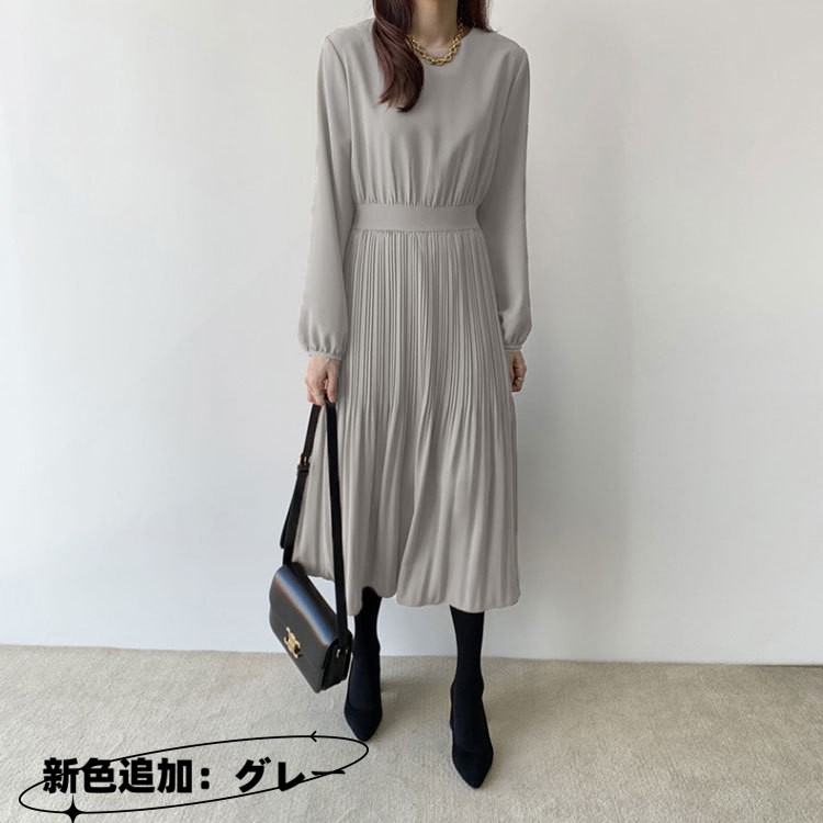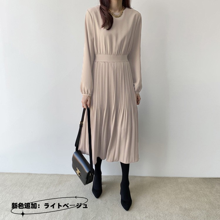 きれいめ ワンピース 黒 長袖 春 秋 ワンピース 続々登場 ブラック ベージュ 新色:グレー 新色:ライトベージュ M L XL 2XL