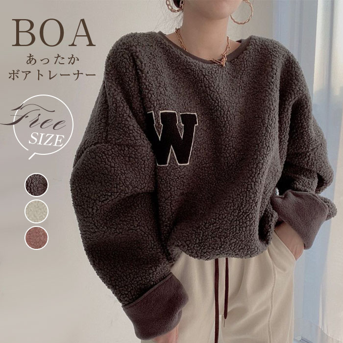 トレーナー レディース ボア 秋 春 レディースファッション 人気 ホワイト ピンク ブラウン