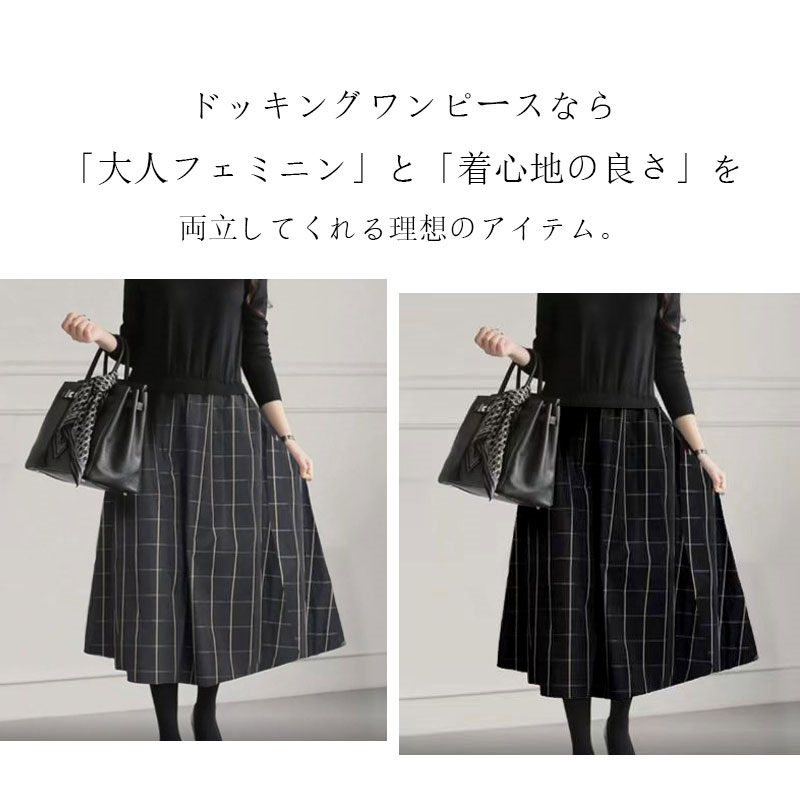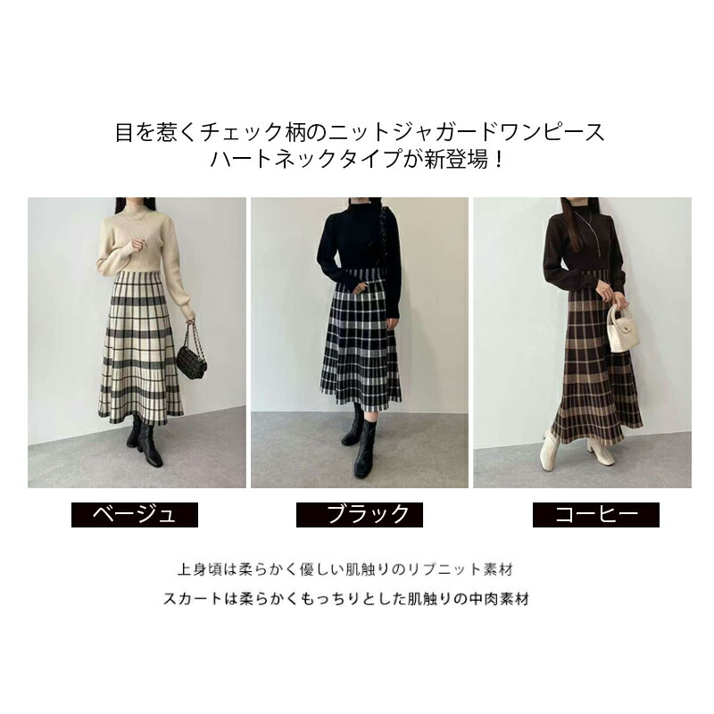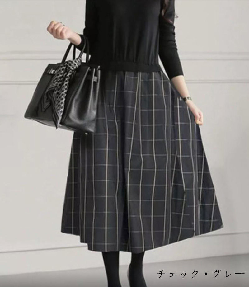 ワンピース きれいめ ロングワンピース ワンピース 超目玉商品 無地・黒 チェック・グレー チェック・黒 無地・杏色 杏色 ベージュ/ハートネック ブラック/ハートネック コーヒー/ハートネック