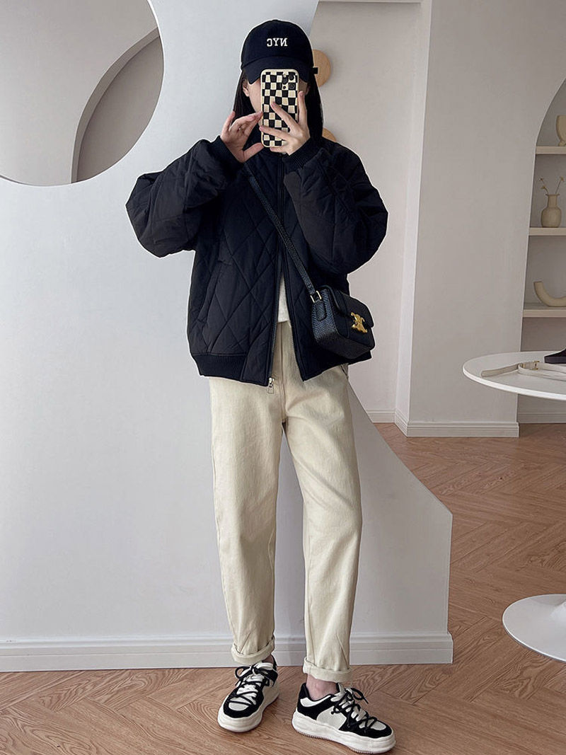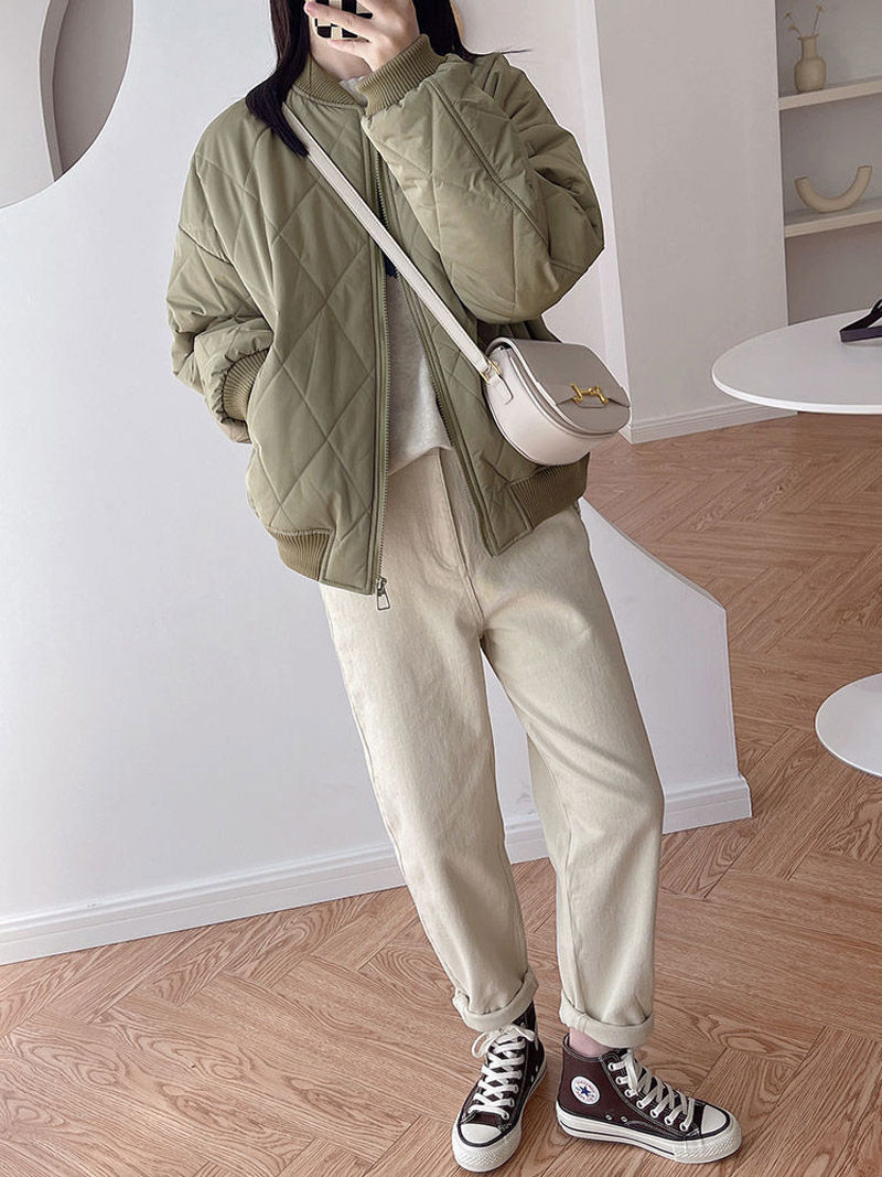 キルティングジャケット ブルゾン レデ レディースファッション 豊富な品揃え カーキ ブラック ホワイト S M L XL 2XL 3XL
