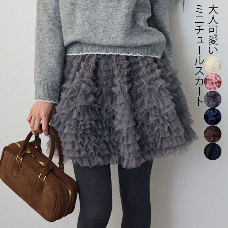 チュールスカート ミニ 大人 ミニスカ レディースファッション 通販 グレー ベージュ ブラック ピンク コーヒー ネイビー