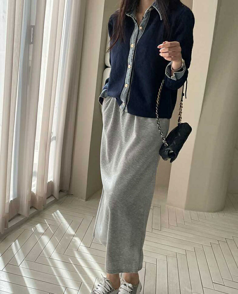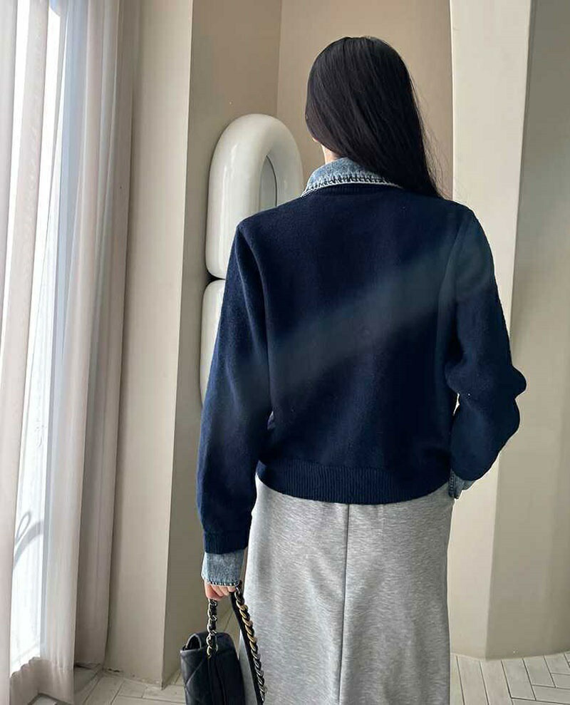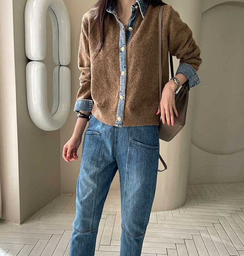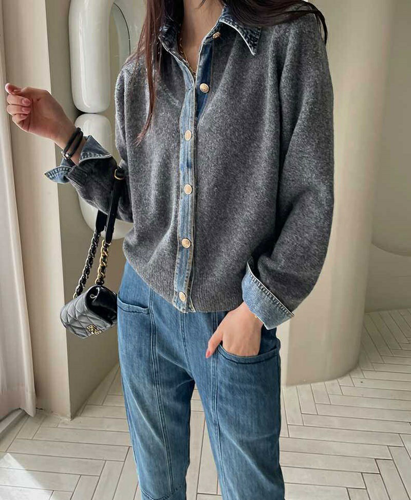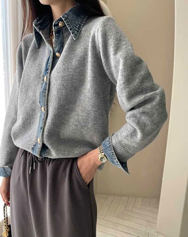 レイヤード風 デニム ニット カーディ レディースファッション 早い者勝ち ダークグレー ライトグレー ネイビー コーヒー色 新色・イエロー