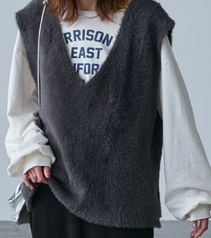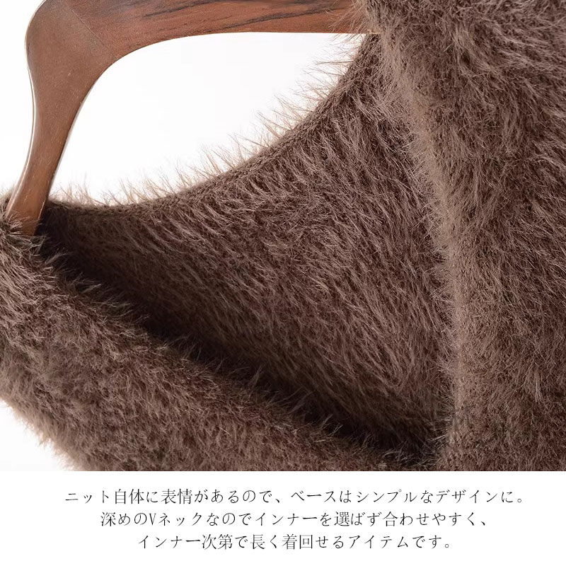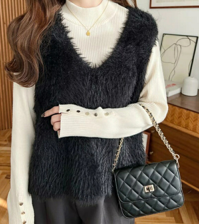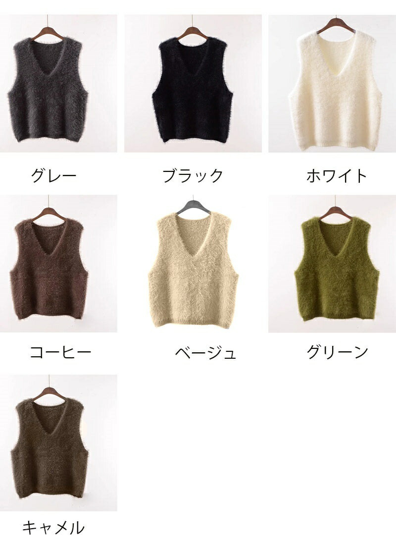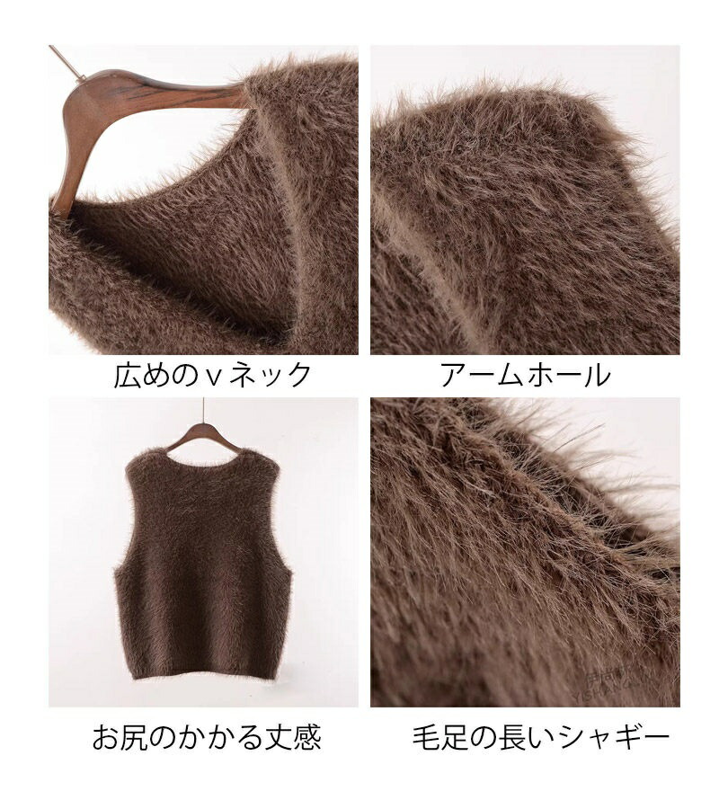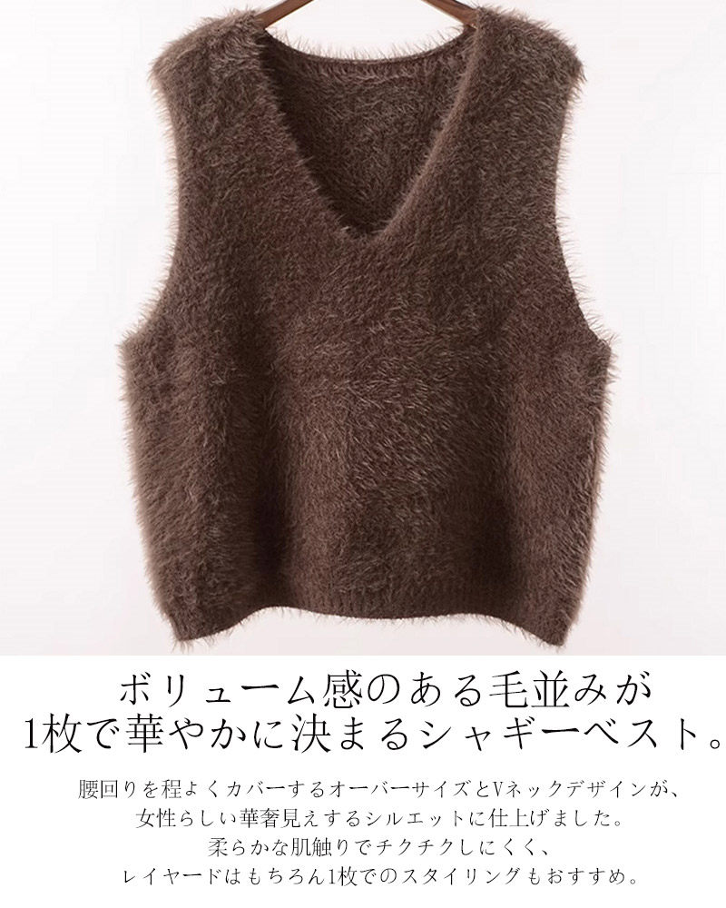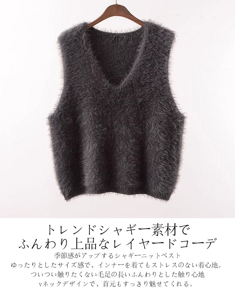 シャギー ベスト レディース Vネック トップス ベスト 豊富な品揃え グレー ブラック ホワイト コーヒー色 ベージュ グリーン キャメル ラメ入り・ブラック ラメ入り・グレー