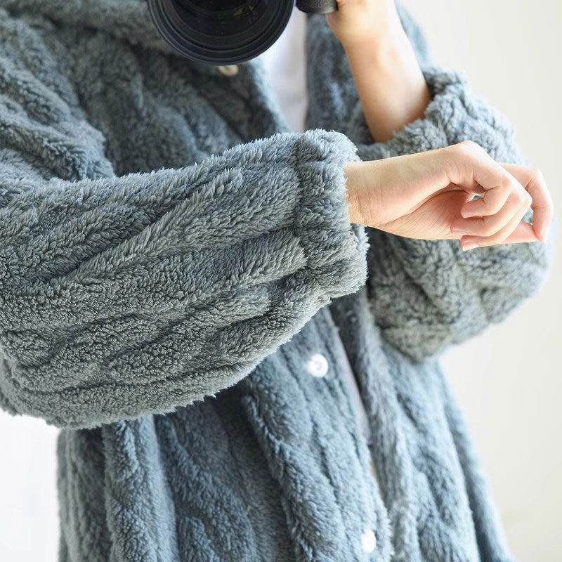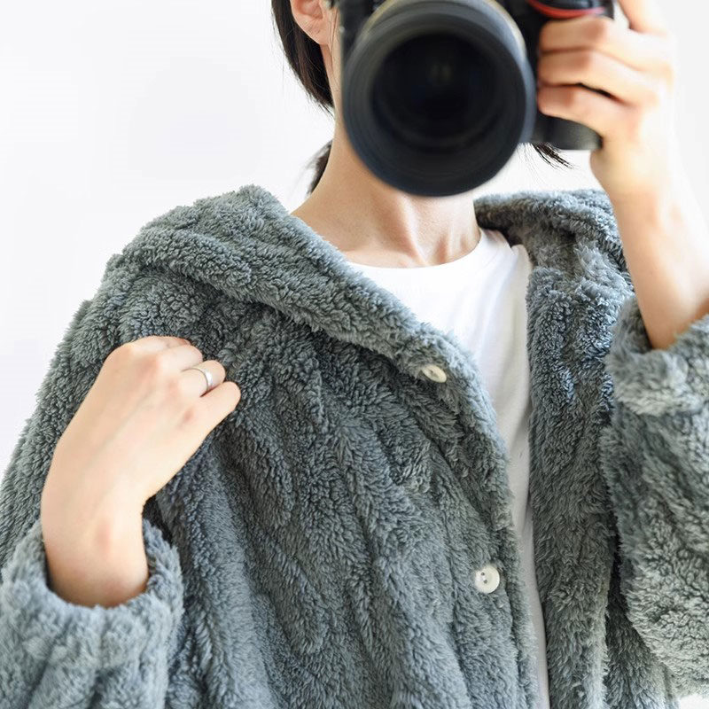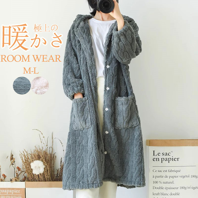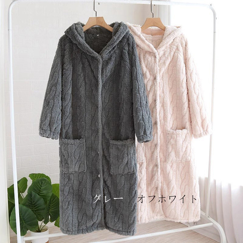 もこもこ カーディガン 部屋着 パジャ インナー 下着 ナイトウエア 大人気! グレー オフホワイト M L
