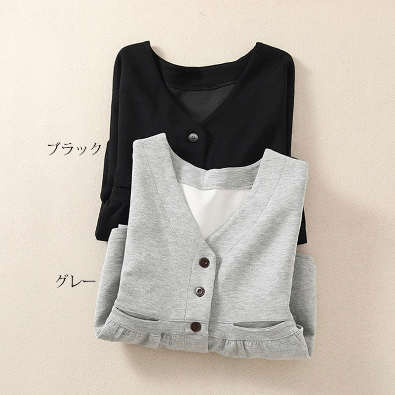 スウェット カーディガン Vネック シ トップス カーディガン ボレロ 新作 グレー ブラック M L XL 2XL