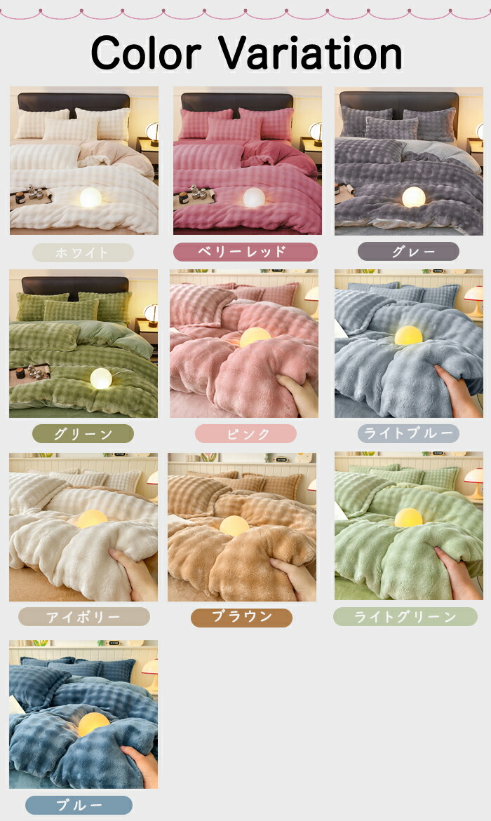 ボア 裏起毛 掛け布団カバー ダブル インテリア 寝具 収納 超目玉商品 ホワイト ベリーレッド グリーン グレー ライトブルー アイボリー ピンク ブラウン ライトグリーン ブルー SD(150*200cm)*3点セット D(200*230cm)*4点セット Q(200*230cm)*4点セット K(220*240cm)*4点セット