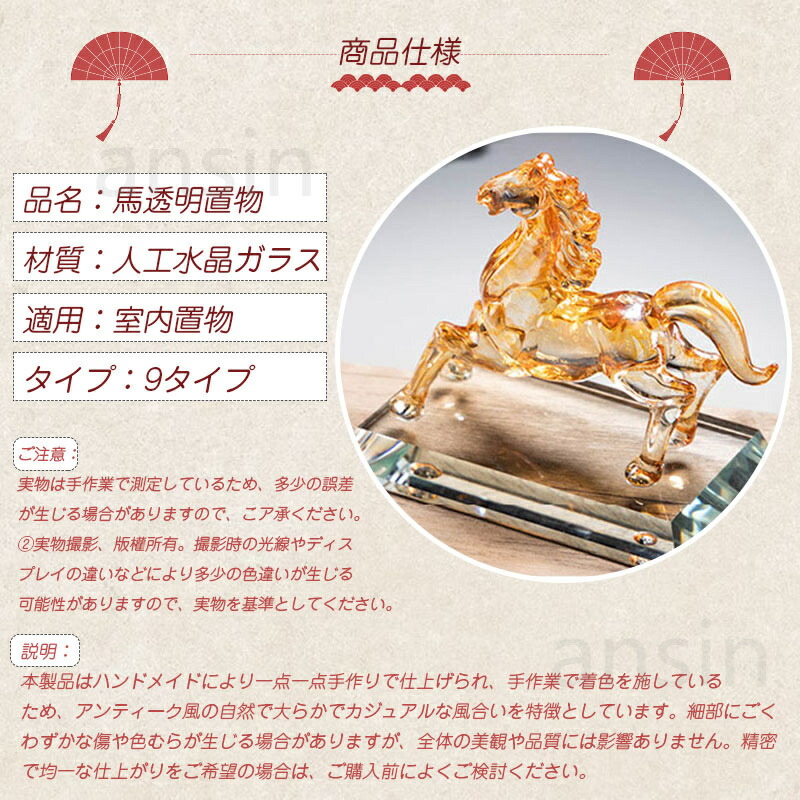 2026年干支 馬 透明置物 人工水晶 タイプ01 タイプ02 タイプ03 タイプ04 タイプ05 タイプ06 タイプ07 タイプ08 タイプ09