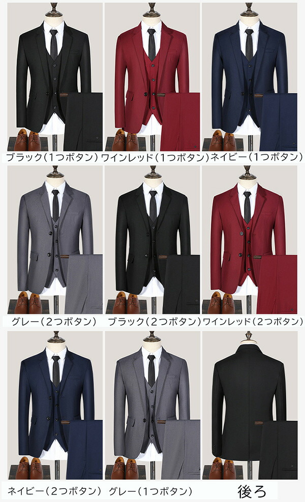 ブラック(2つボタン)/グレー(2つボタン)/ネイビー(2つボタン)/ワインレッド(2つボタン)