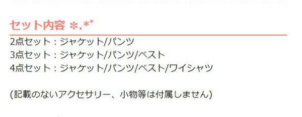 4点セット:ジャケット/パンツ/ベスト/ワイシャツ