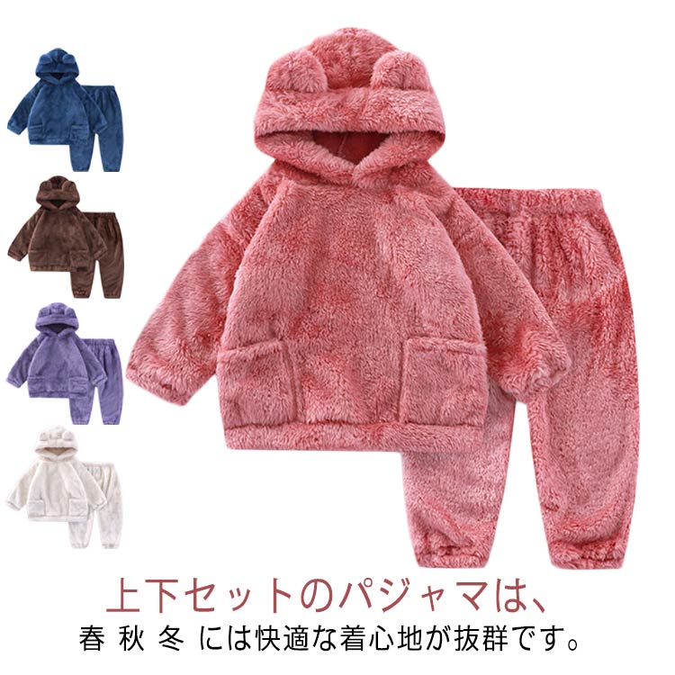 パジャマ フード付き 裏起毛 セットア キッズ ベビー マタニティ 早い者勝ち 上下セットホワイト 上下セットピンク 上下セットブルー 上下セットブラウン 上下セットパープル 80 90 100 110 120