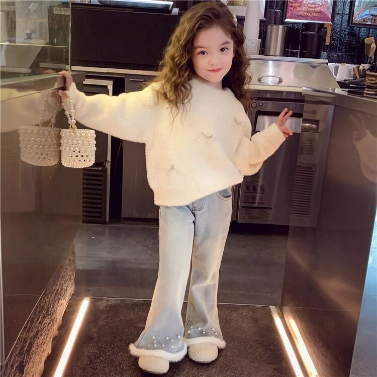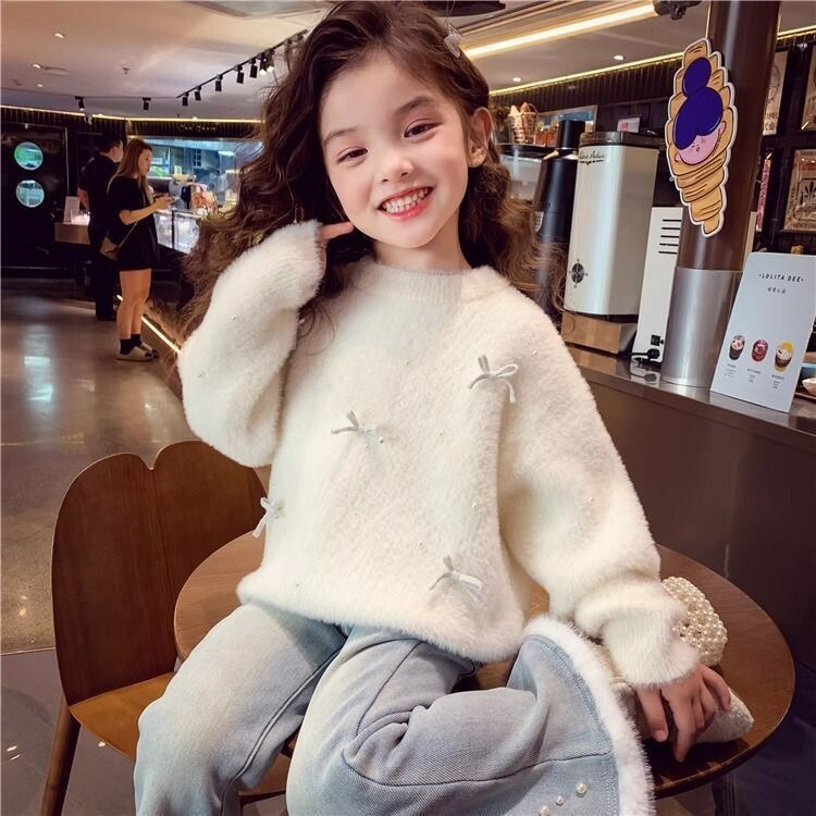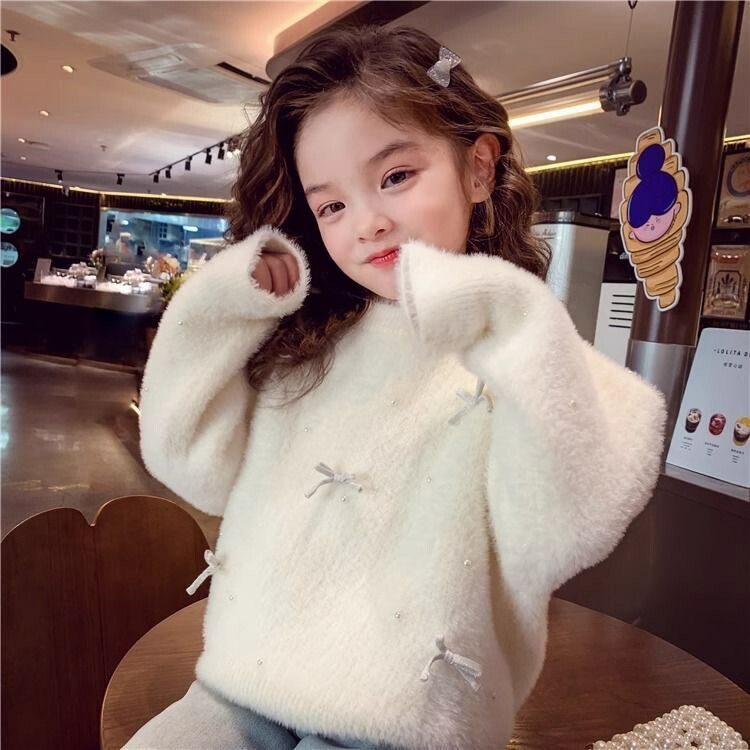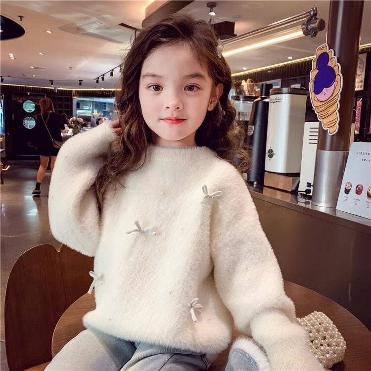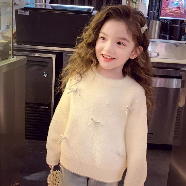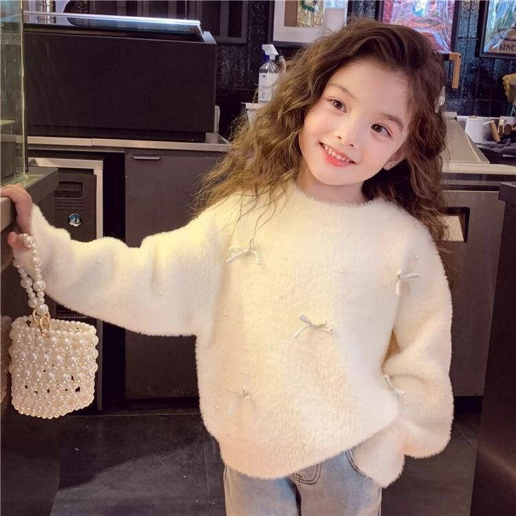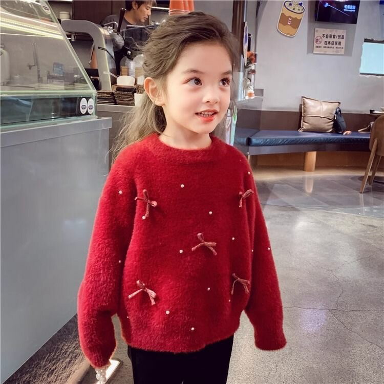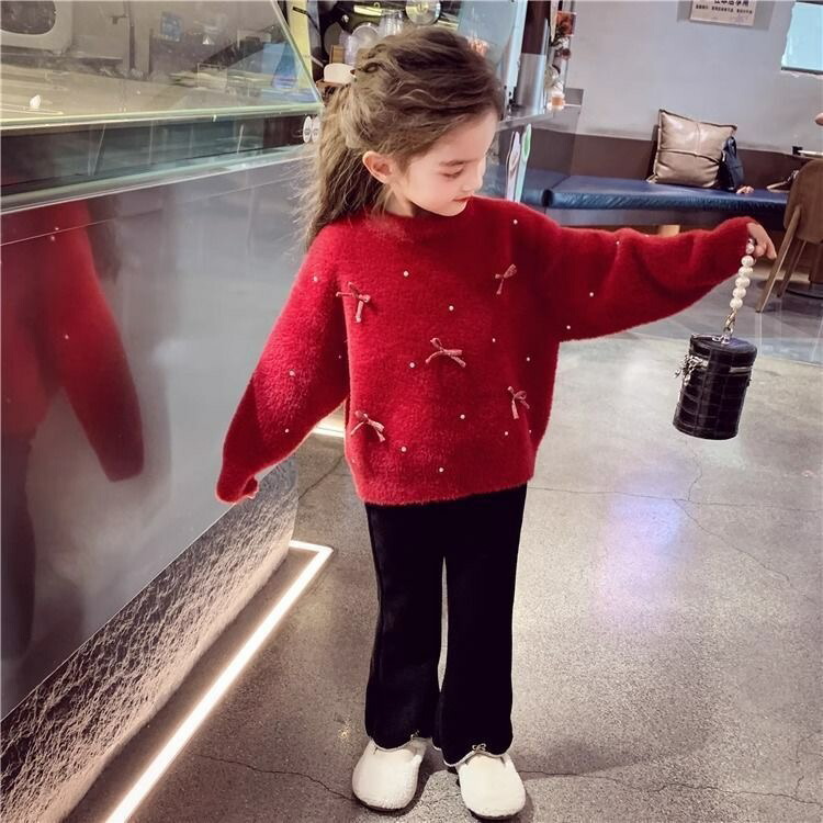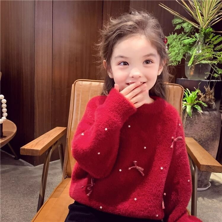 リボン トップス ニット セーター ガ キッズ トップス セーター 新登場! レッド アイボリー 90 100 110 120 130 140 150 160