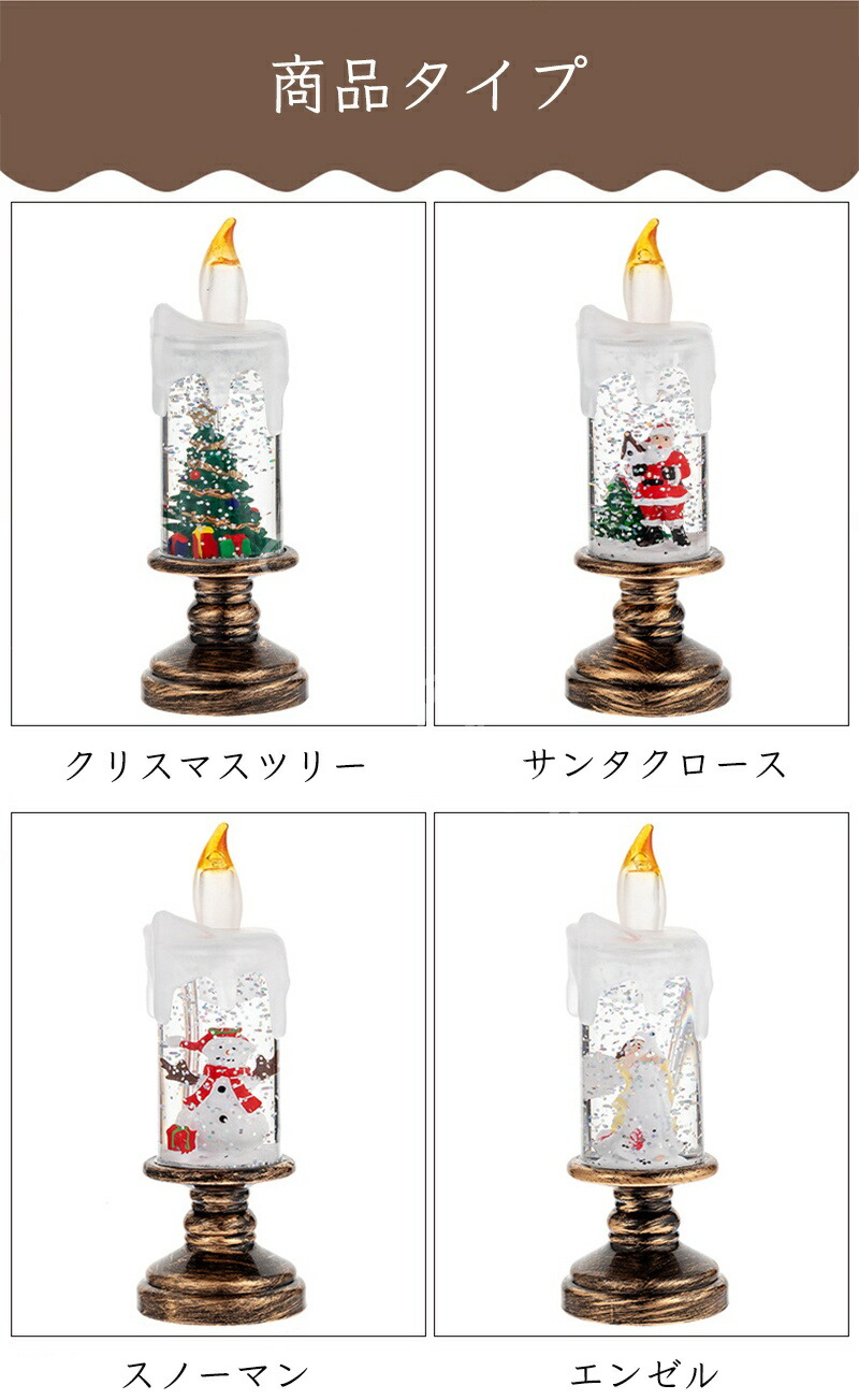 LEDキャンドルライト ろうそく 卓上 クリスマスツリー+サンタクロース クリスマスツリー+スノーマン クリスマスツリー+エンゼル サンタクロース+スノーマン サンタクロース+エンゼル スノーマン+エンゼル 各タイプ1本(まとめて4本)